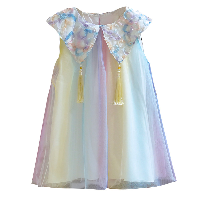 Lashabelle childlike girl's summer ocean dress Rainbow 2022 summer dress new foreign school children baby long dresses
