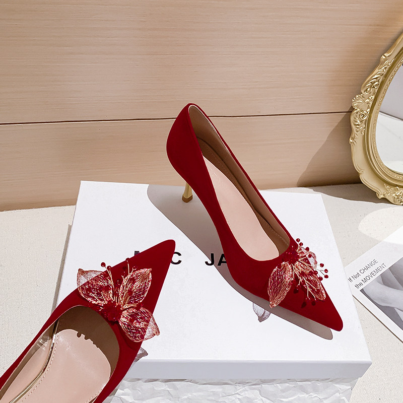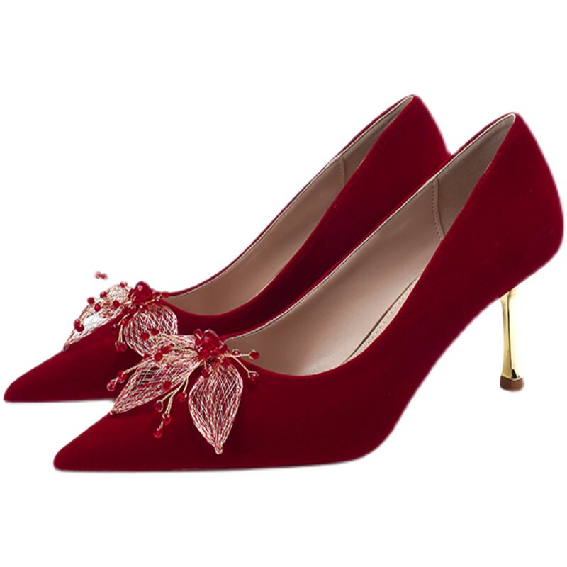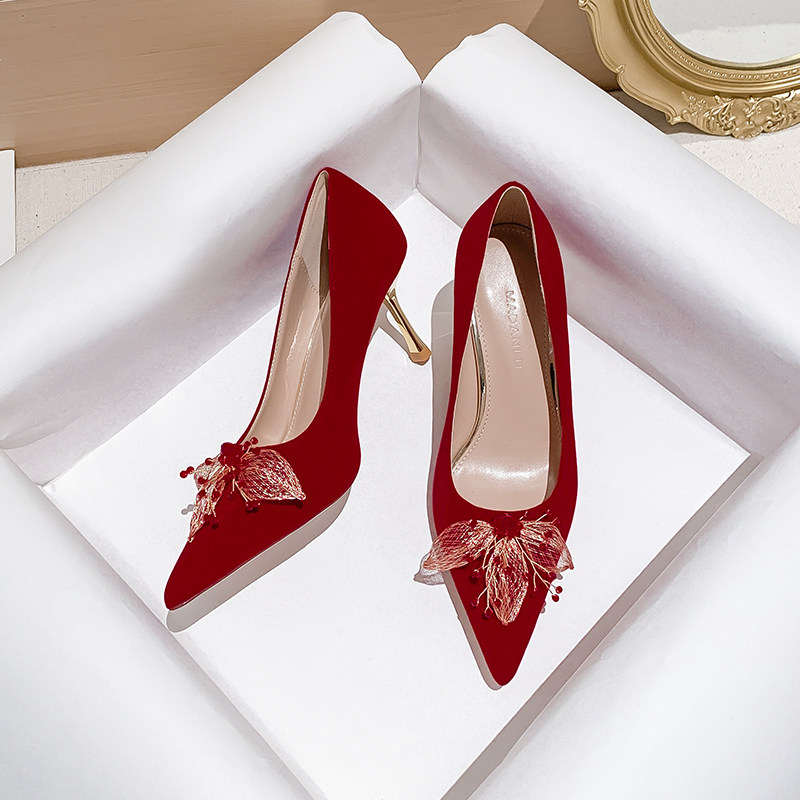 Retro wedding shoes bridal shoes 2022 new stiletto Xiuhe wedding dress two wear red high heels women's wedding shoes