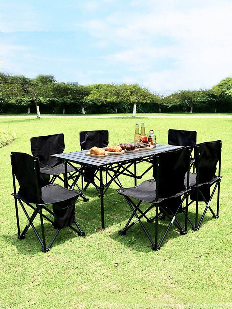 Outdoor portable folding tables and chairs camping garden beach self-driving tour black barbecue beach picnic outside egg roll table