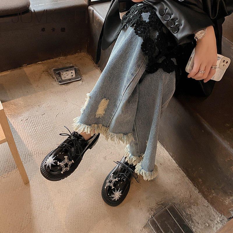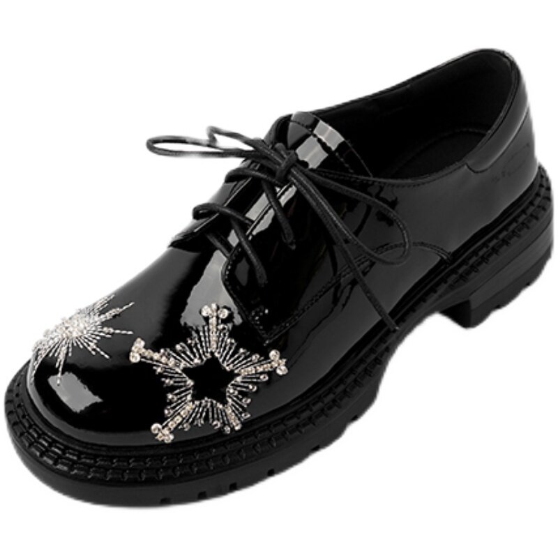 JOVKATTI Water Diamond Star Lefu Shoes thick soles thick heel single shoes Spring embroidery heavy industry with English small leather shoes