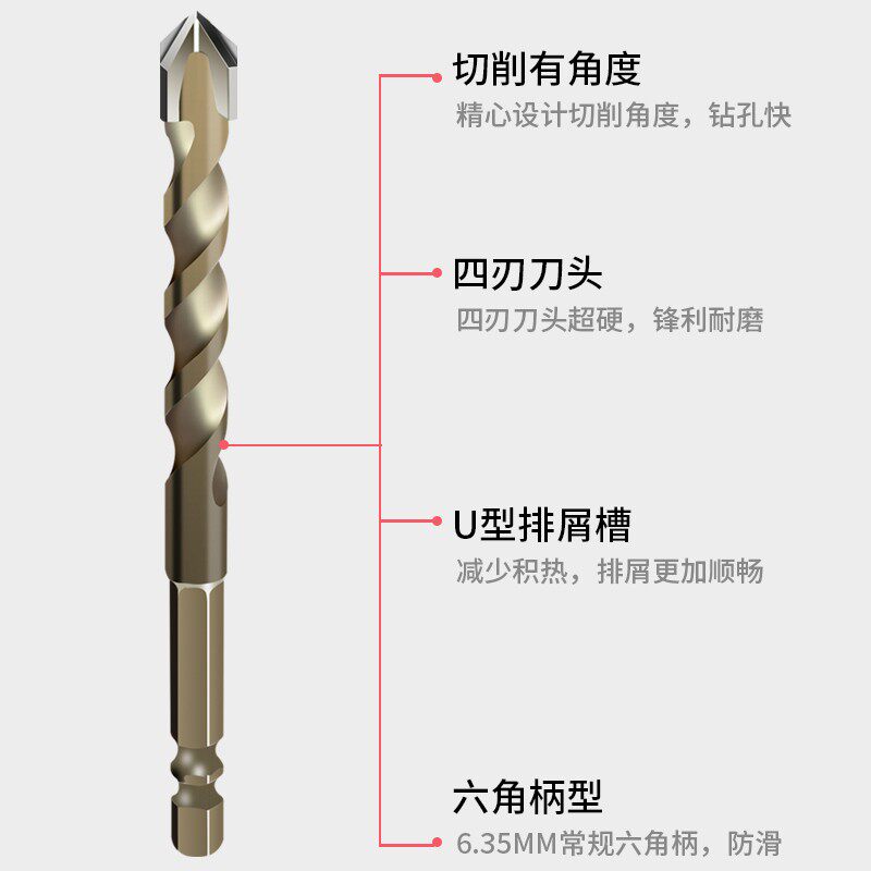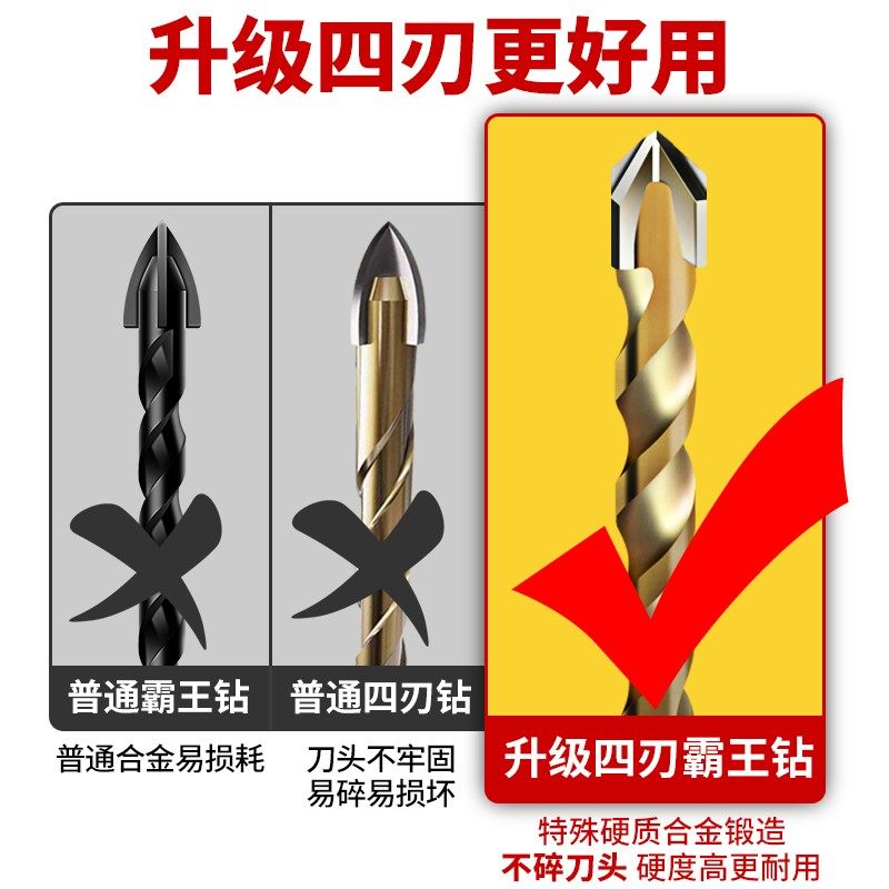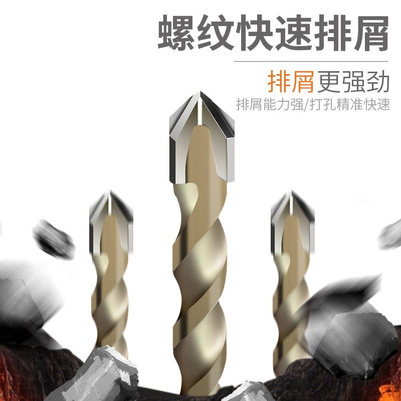 Tile Punching Drills Large Full Alloy Triangular Drill 6mm Concrete Glass Drills Multifunction Four-Edged Barking Drill