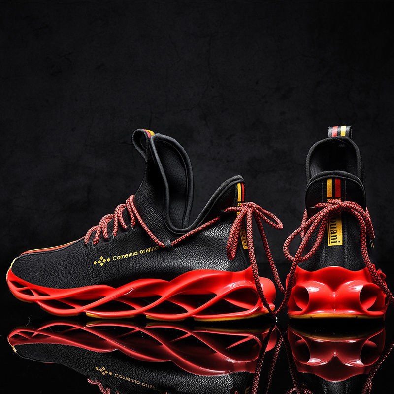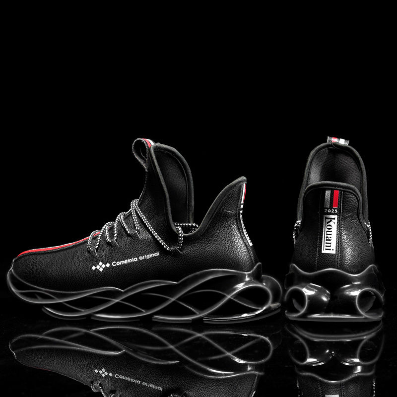 Men's shoes spring and summer leather waterproof thick-soled shoes men's 2022 new Korean version breathable hollow mesh sneakers men