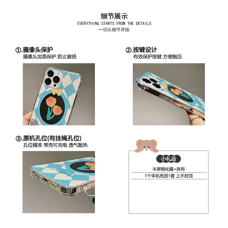 (Collection shopping cart) Priority shipping★photographed and delivered half-screen steel film★ Tulip butterfly junction mirror blue and white magazine string bead chain