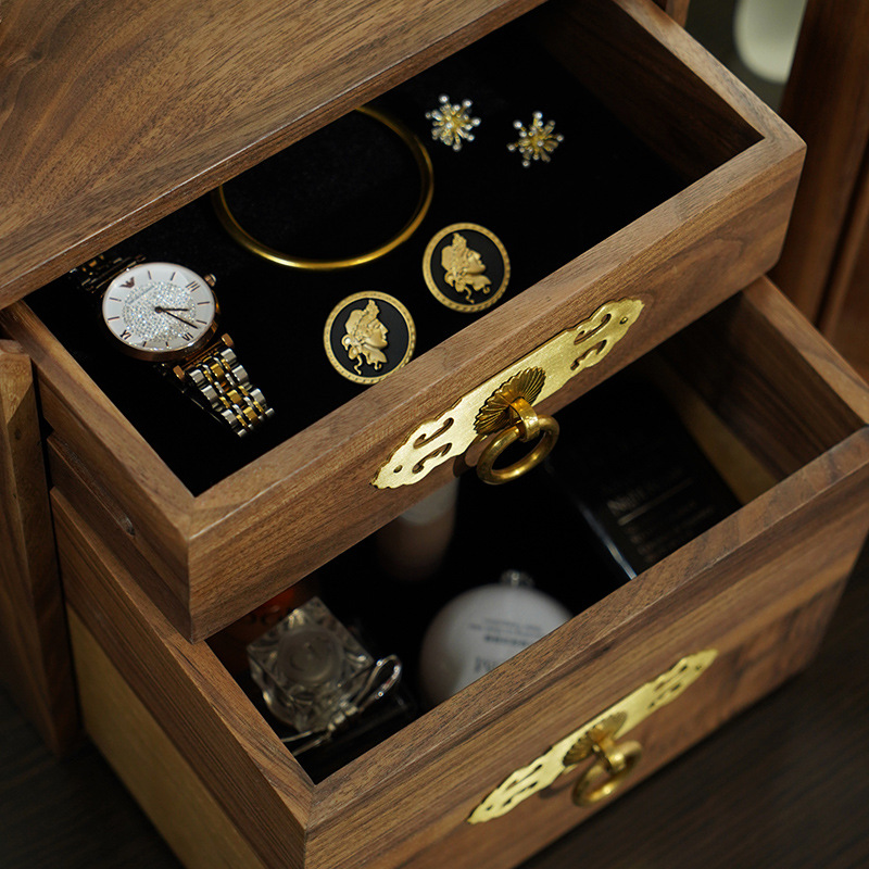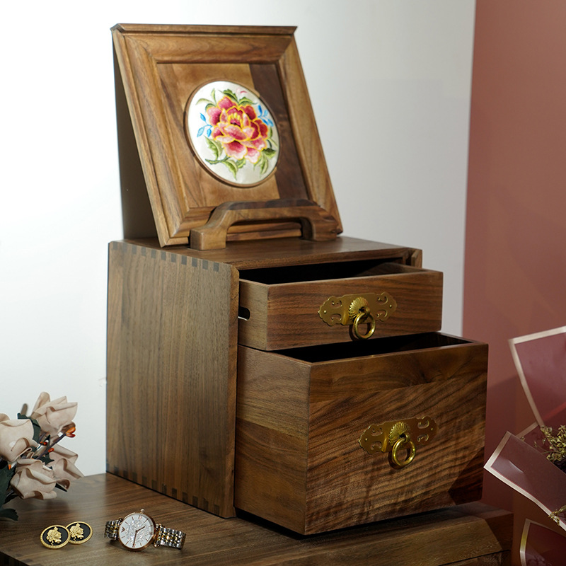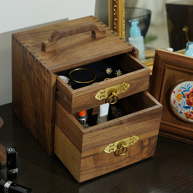 Imported North American black walnut dressing table storage box to send girlfriends gifts Chinese retro portable wooden box cosmetic box