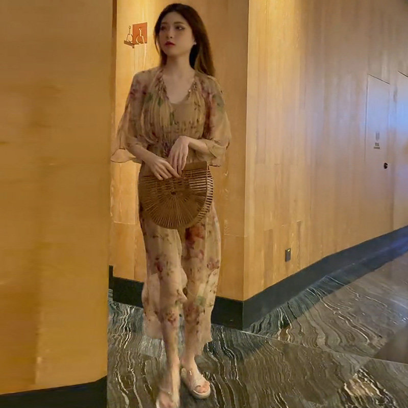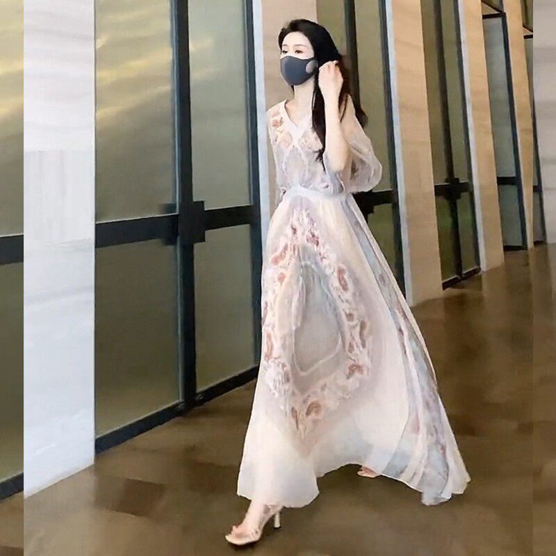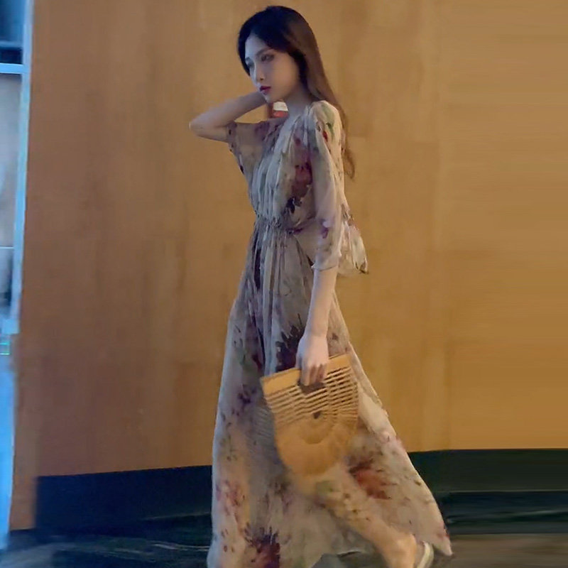 2022 Summer new French style Retro small crowdDesign High sense Little Subtemperament Snow spun Flowers Foreign Dress Women