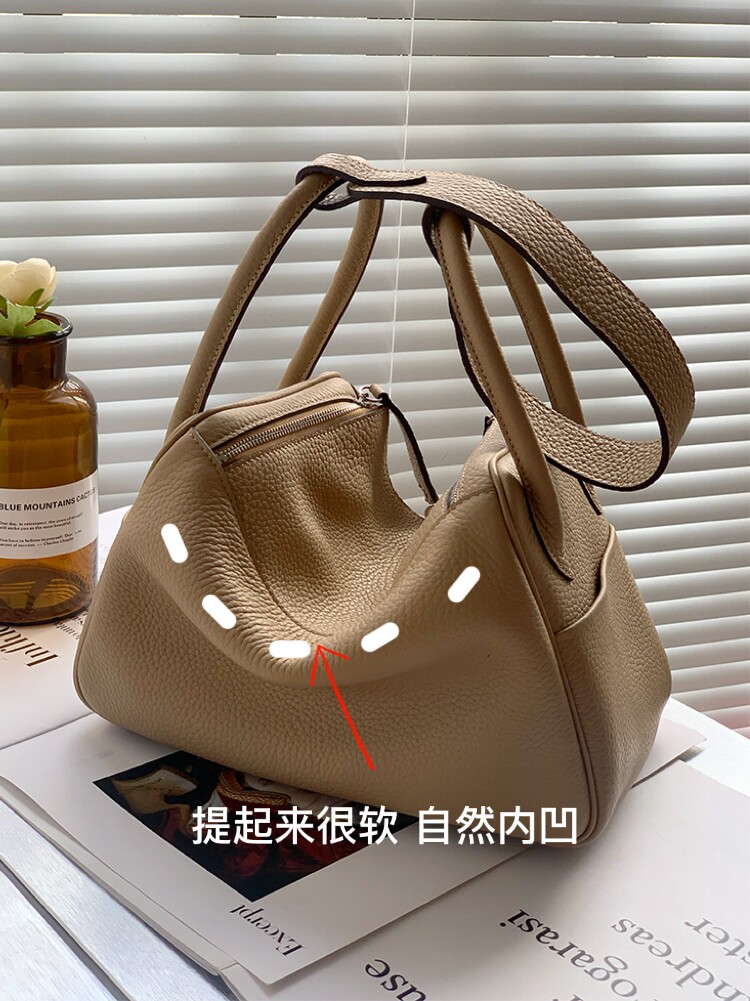 Imported TC natural first layer cowhide Lindi bag 26 large-capacity textured shoulder bag commuting casual handmade bag square bag
