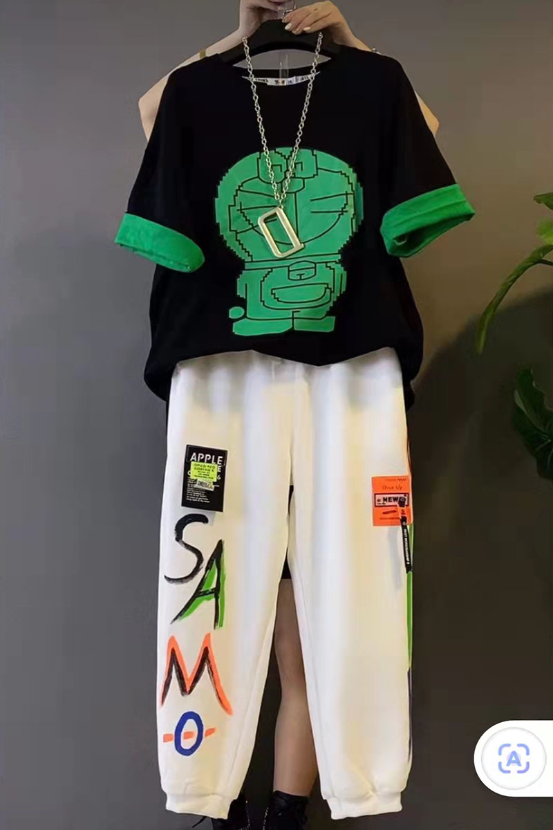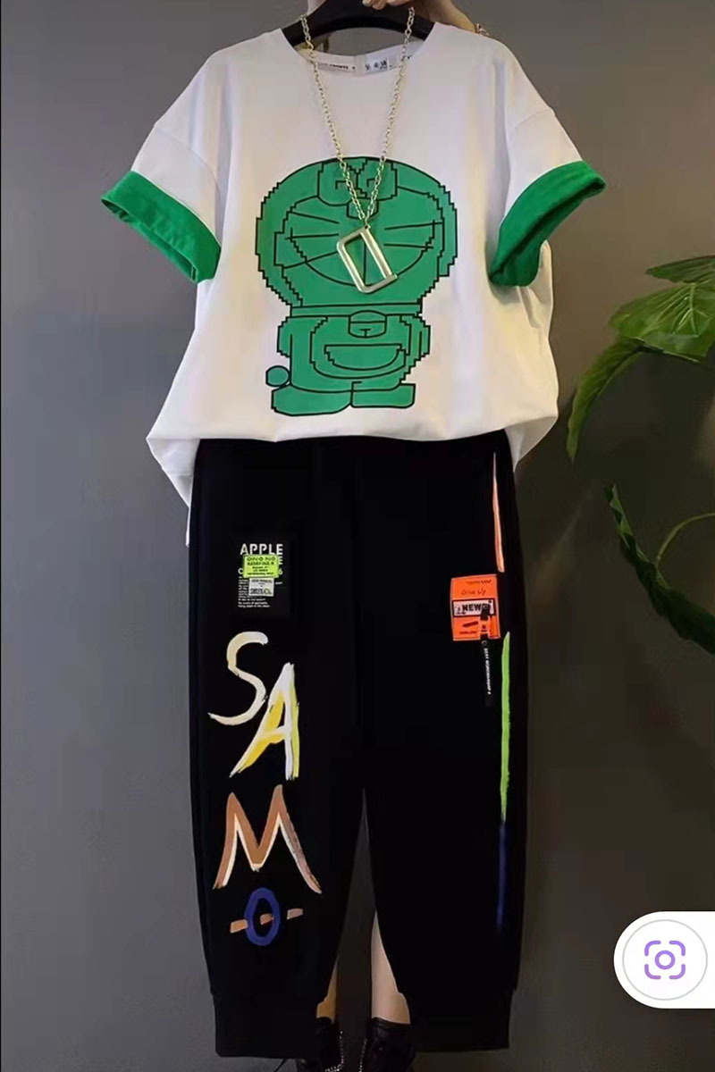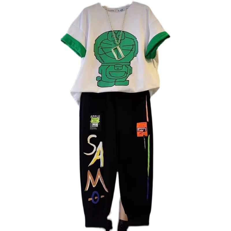 2022 Spring Large Size Women's Dress New Cartoon T-shirt Woman Short Sleeve Casual Fashion Pants Casual Two-piece Style