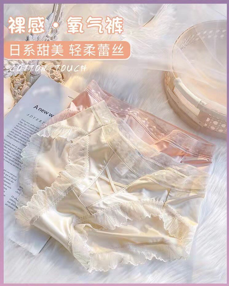Underwear women's 2021 new hot fashion ice silk summer seamless lace sexy pure desire low waist fat mm silky smooth