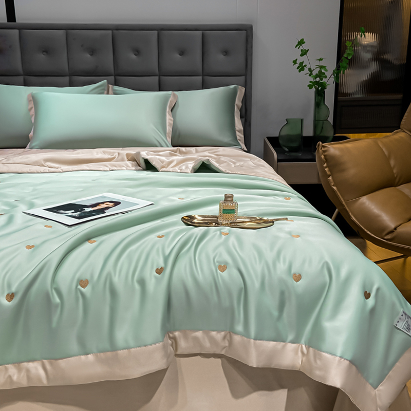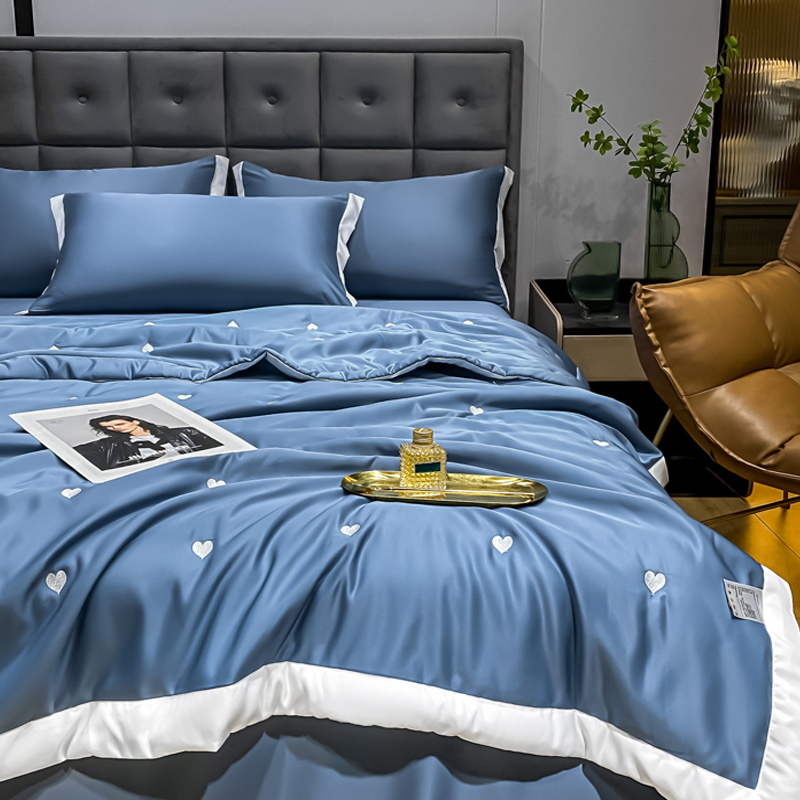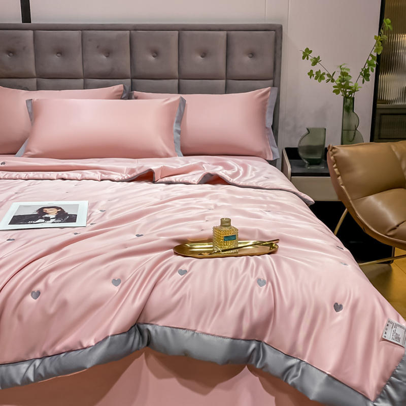 Summer ice silk summer cool quilted by four pieces of summer quilt by air conditioning quilt core silk sliding naked with washable summer thin quilt double