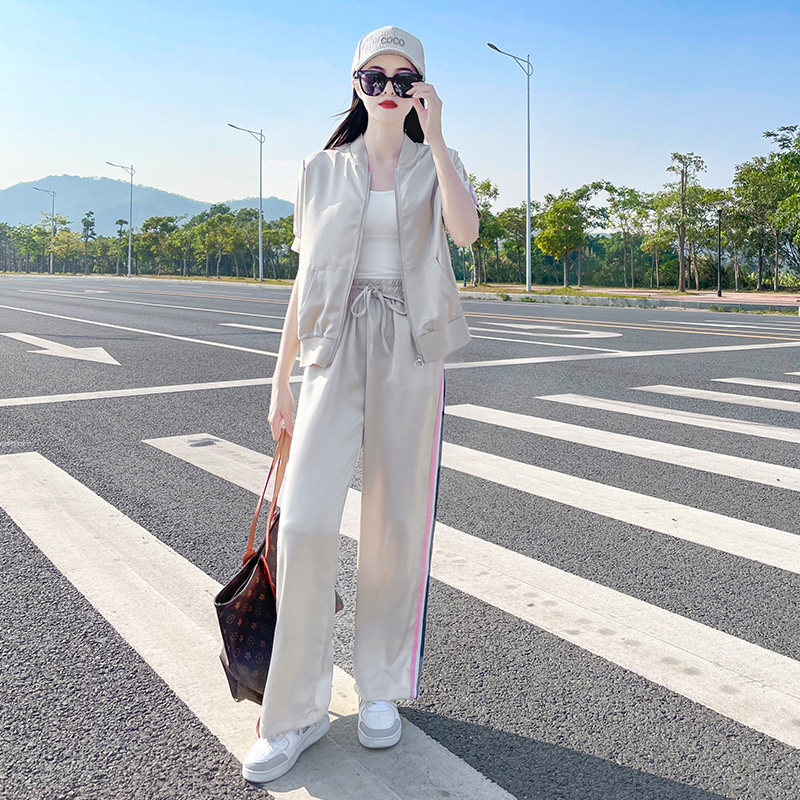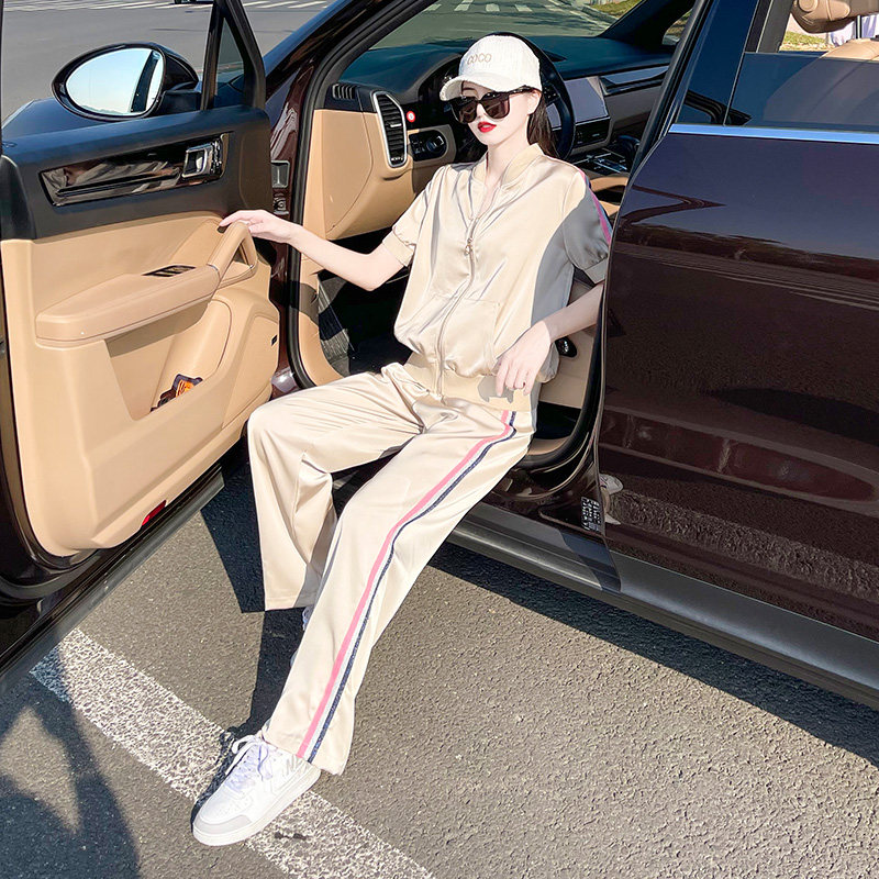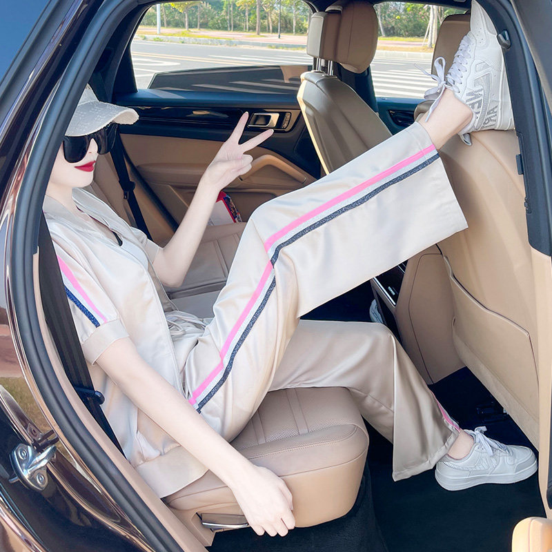 2022 Summer New Casual Sports Suit Women Fashion 100 Hitch Loose Cardiovert Short Sleeve Broadlegged Pants Two Sets Tide
