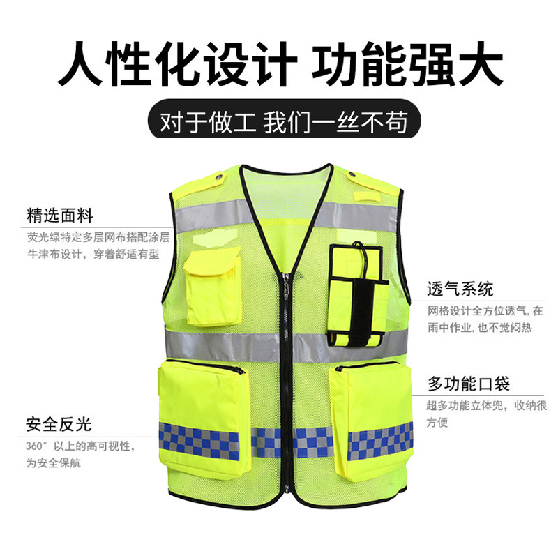 Mesh reflective vest multifunctional road construction safety warning traffic rescue breathable locomotive riding Machia
