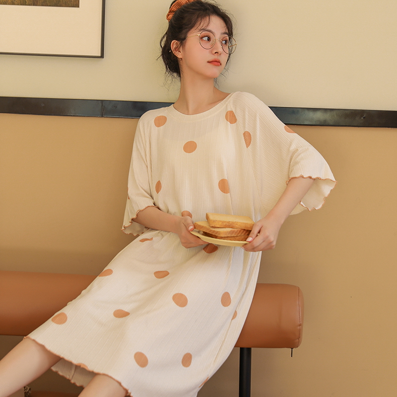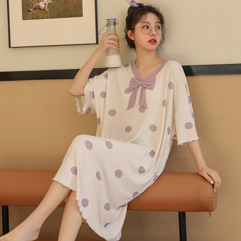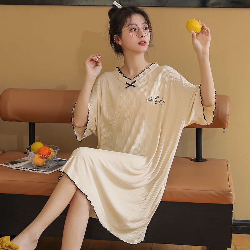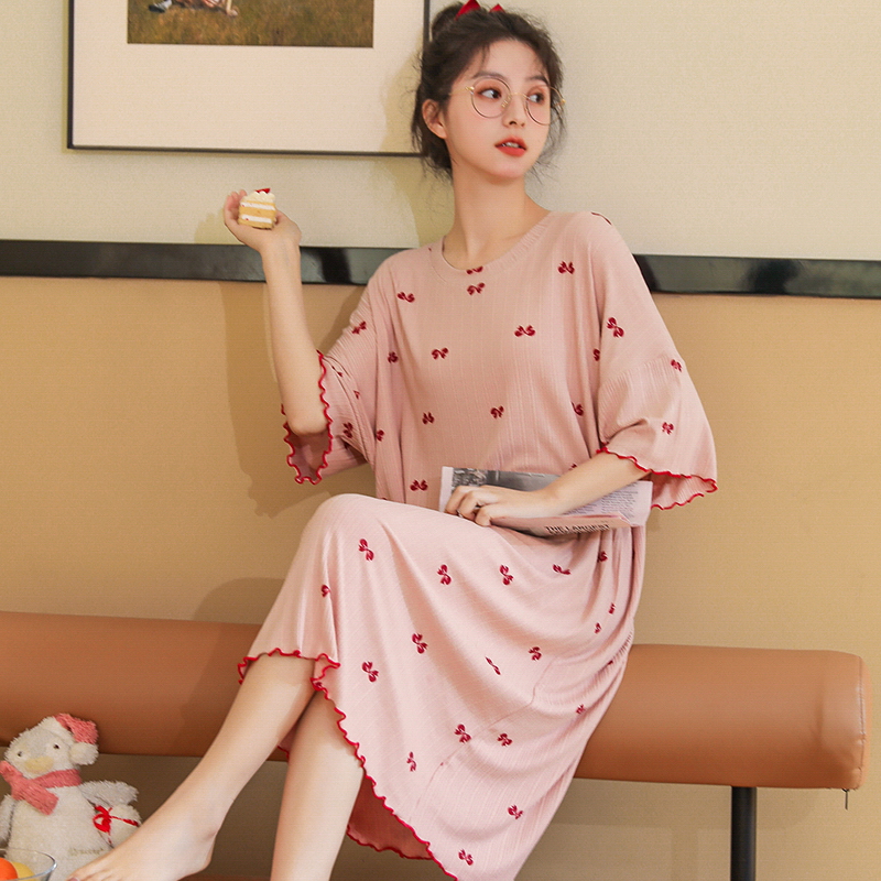 2022 Modal Pajamas Women Summer Ice Silk Mid-Length Student Sweet Nightgown Princess Style Korean Edition Casual Girl
