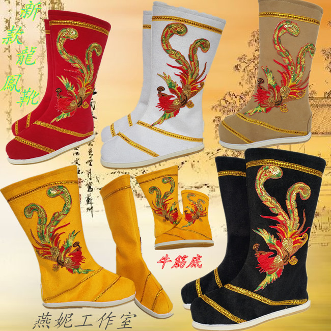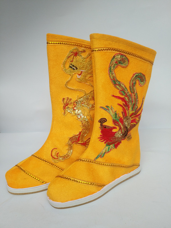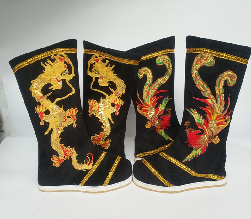 Sichuan Opera Changing Face Emperor Dragon Boots Drama Hanfu Shoes Ancient Dress Boots Black Yellow Performance Boots Ancient Imperial Cockatoo Boots-Taobao