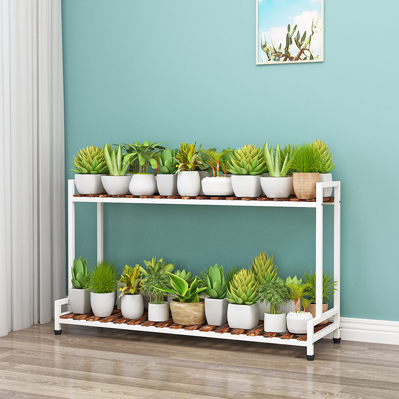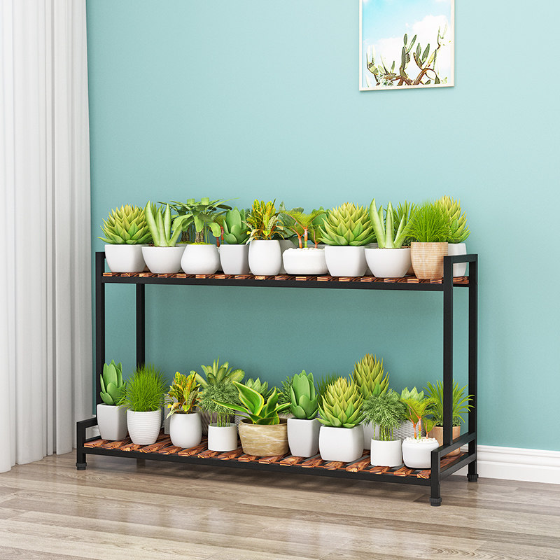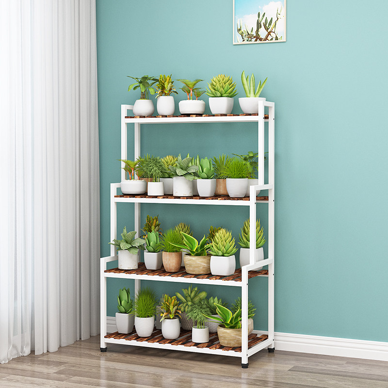 Solid wood iron frame floor balcony household multi-meat collection frame landing multi-layer ladder flower basket