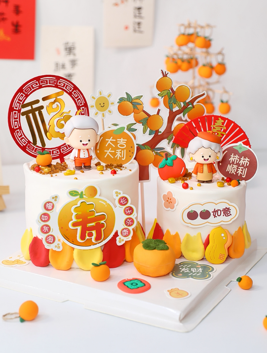 Orange Shou Insert Set A-Type Orange Grandpa Ornament One A-Style Peach Grandma Ornament One B-Style Three-Dimensional Orange Grandma Ornament One B-Style Three-Dimensional Orange Grandpa Ornament One Acrylic Persimmon Ruyi One