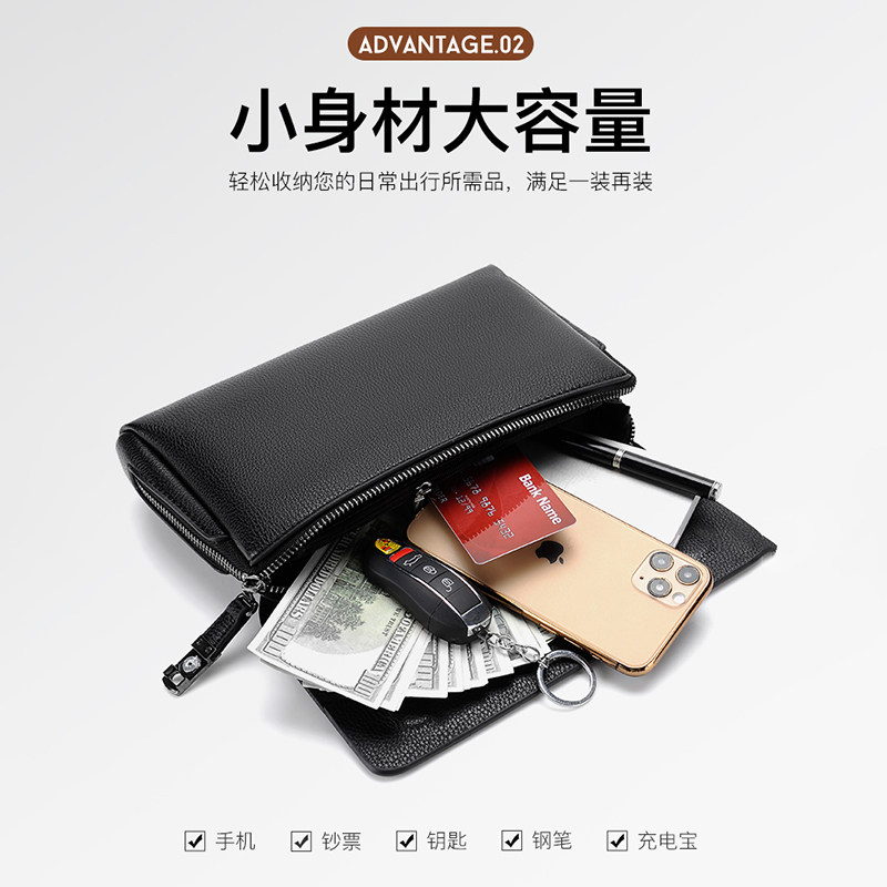 Sky Hiro Kangaroo Hand Held Bag Men Genuine Leather Texture Large Capacity Card Bag Driver's License Integrated Leisure Long Version of Laced Wallet