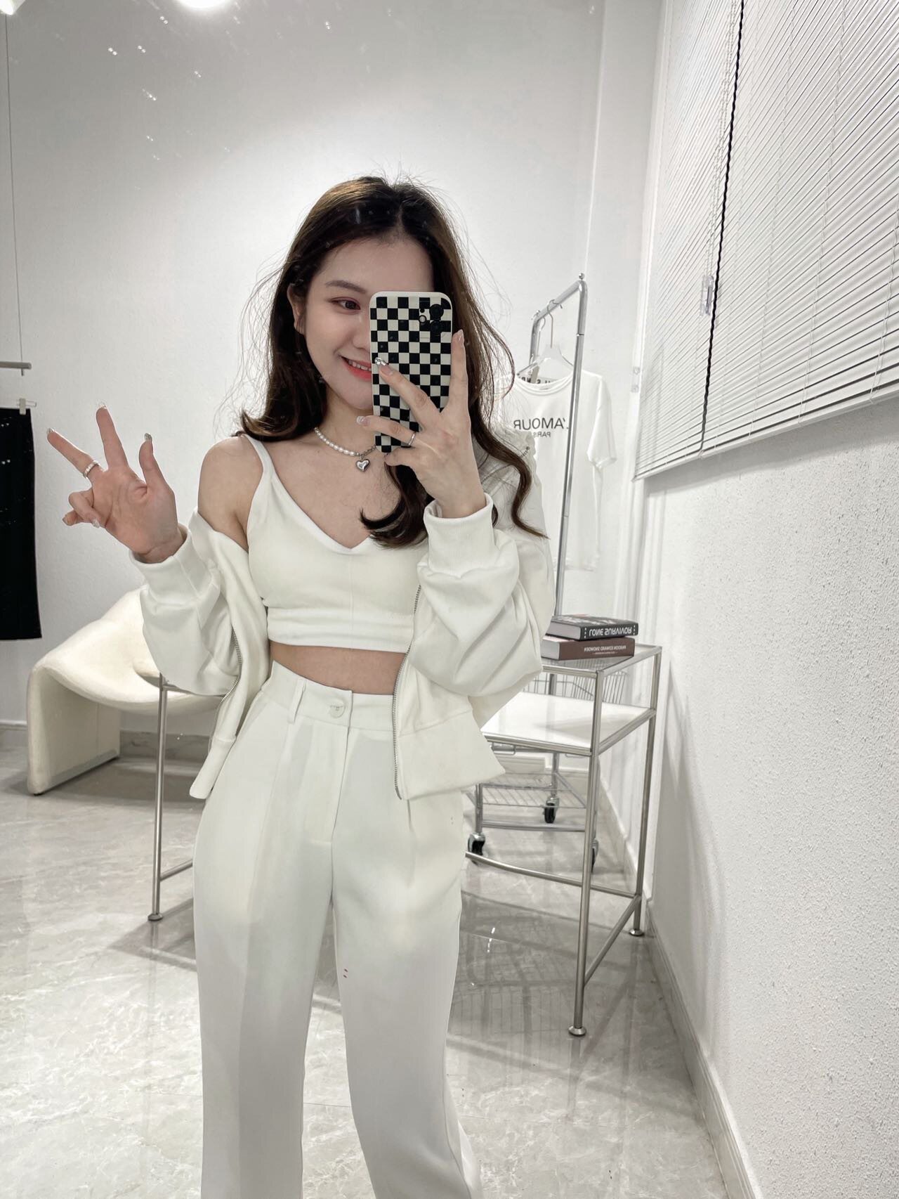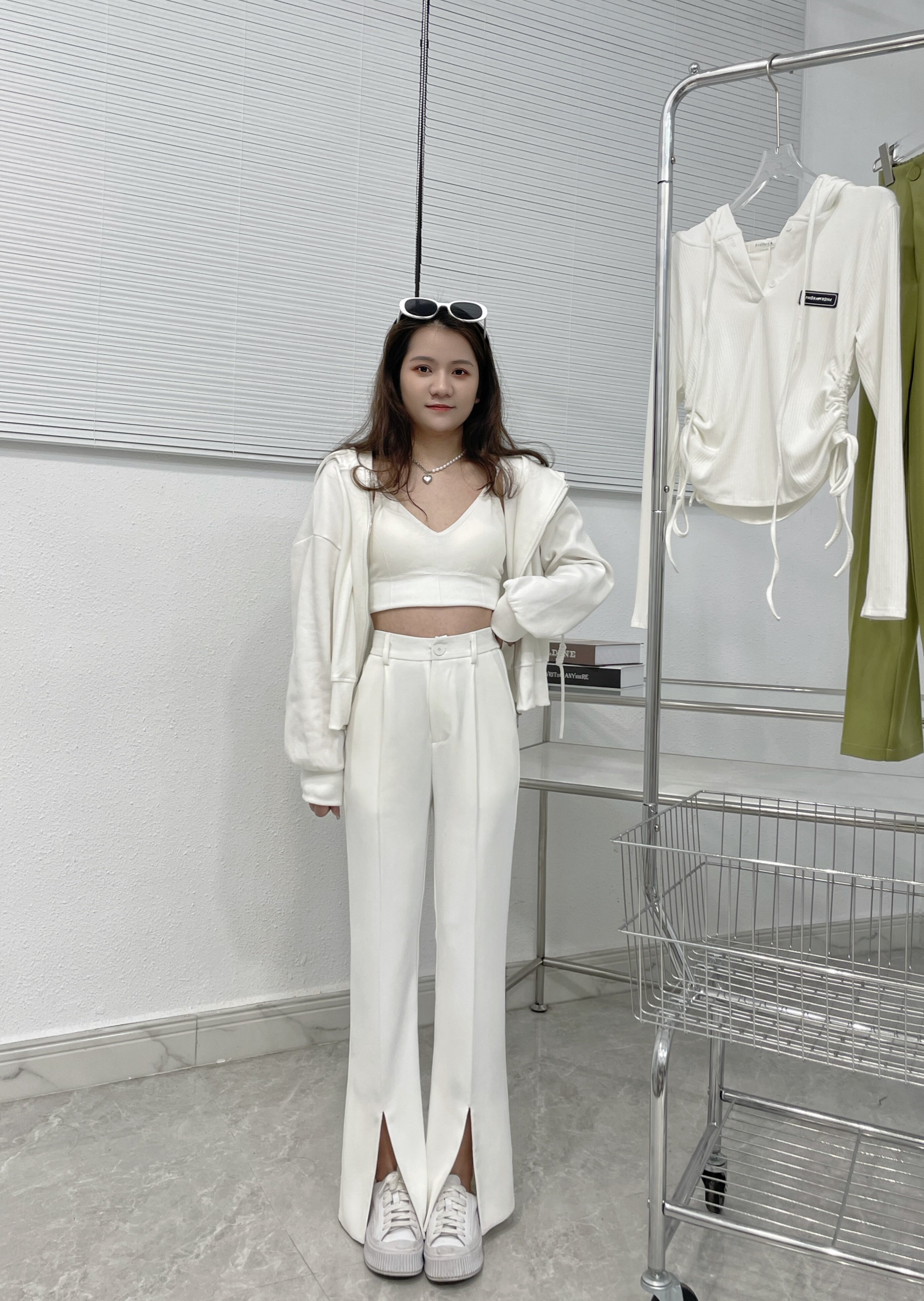 145 small 2022 spring and summer white high-waisted straight slit West mopping pants eight points nine points short 150