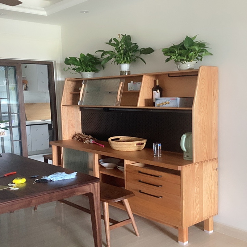 Japanese solid wood dining sideboard hole board against the wall high cabinet home Nordic tea cabinet Japanese kitchen wine cabinet customization