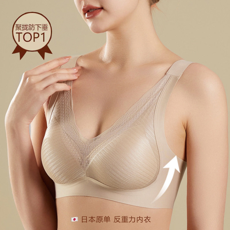 New Japanese anti-gravity underwear women's seamless latex gather adjustment type close breasts wide shoulder straps lace cute