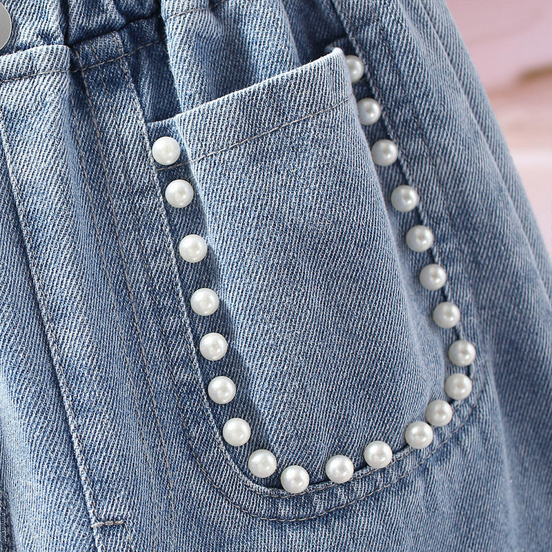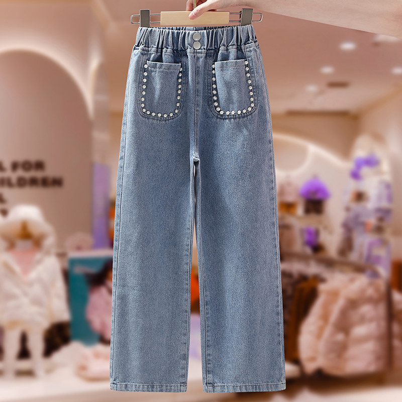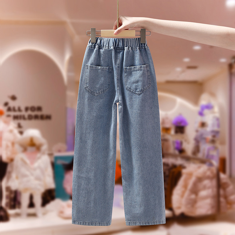 Girl Cowboy Wide Pants 2022 Spring New Blue Casual Foreign Pie Net Red CUHK Scouts Trousers