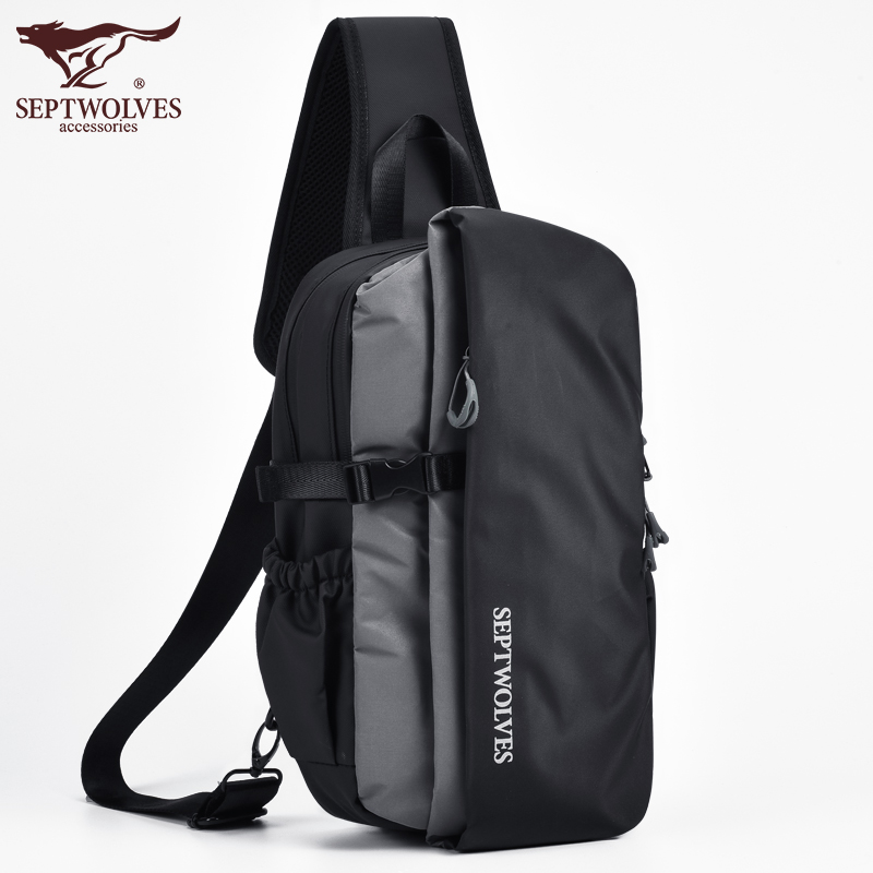 Seven Wolves Chest Bag Men Single Shoulder Bag Men's Shoulder Bag Boomer Big Capacity Casual Multifunction Outdoor Sloping Satchel Commuter Bag