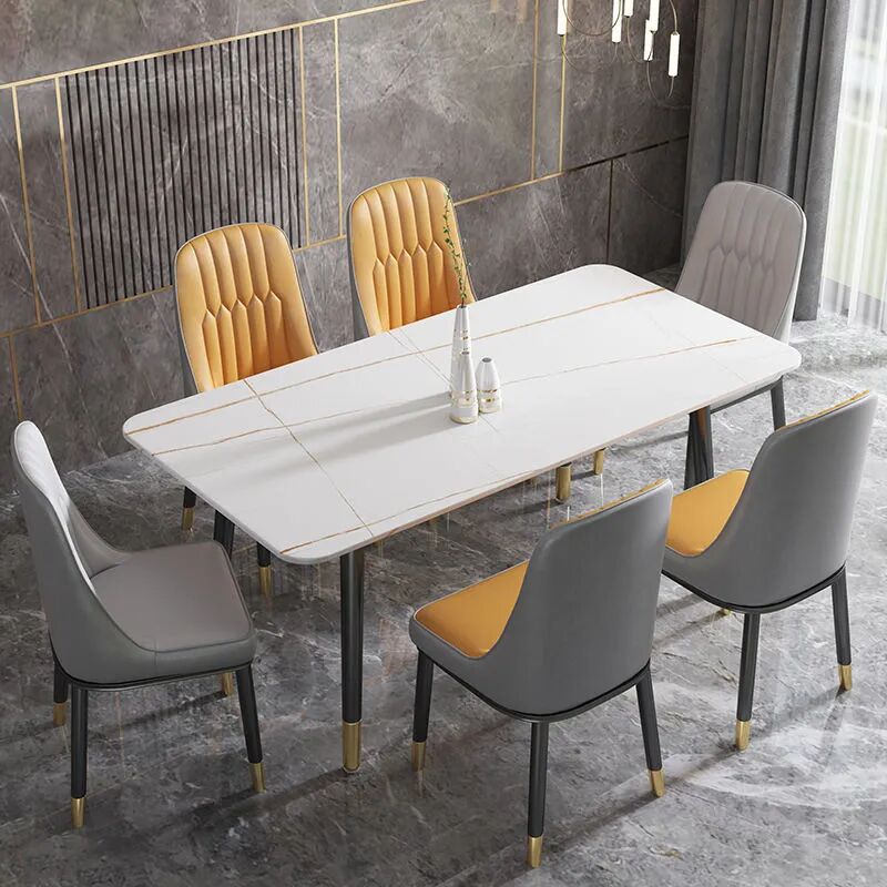 Nordic Home Small Household Type Rock Plate Table Modern Minima Light Extravagant Dining Table And Chairs Rectangular Table And Chairs Combined Marble