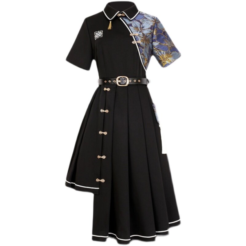 Sleepless City Original Hanfu Female National Style Improvement Summer Daily Han Elements Ancient Style Short-sleeved Black Dress Costume
