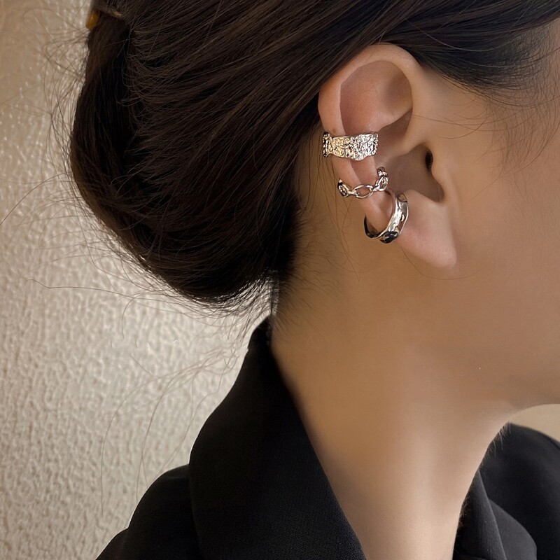 Korean net red irregular metal ear clips female simple cold wind ear bone clip temperament niche ear accessories