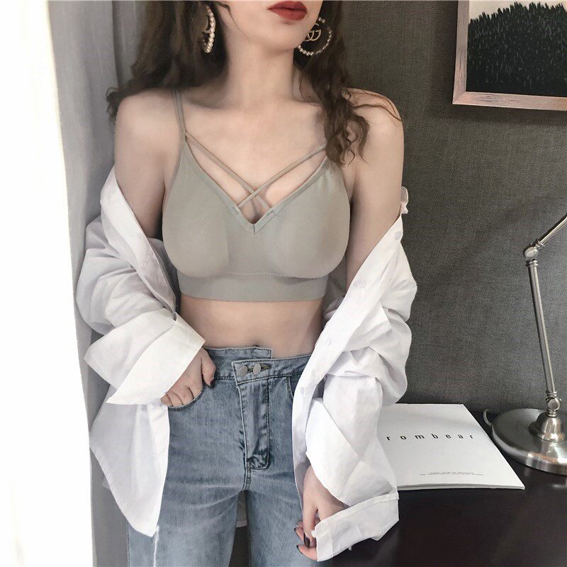 Japanese black sling no steel ring tube top solid color 2022 new beautiful back underwear girl outer vest