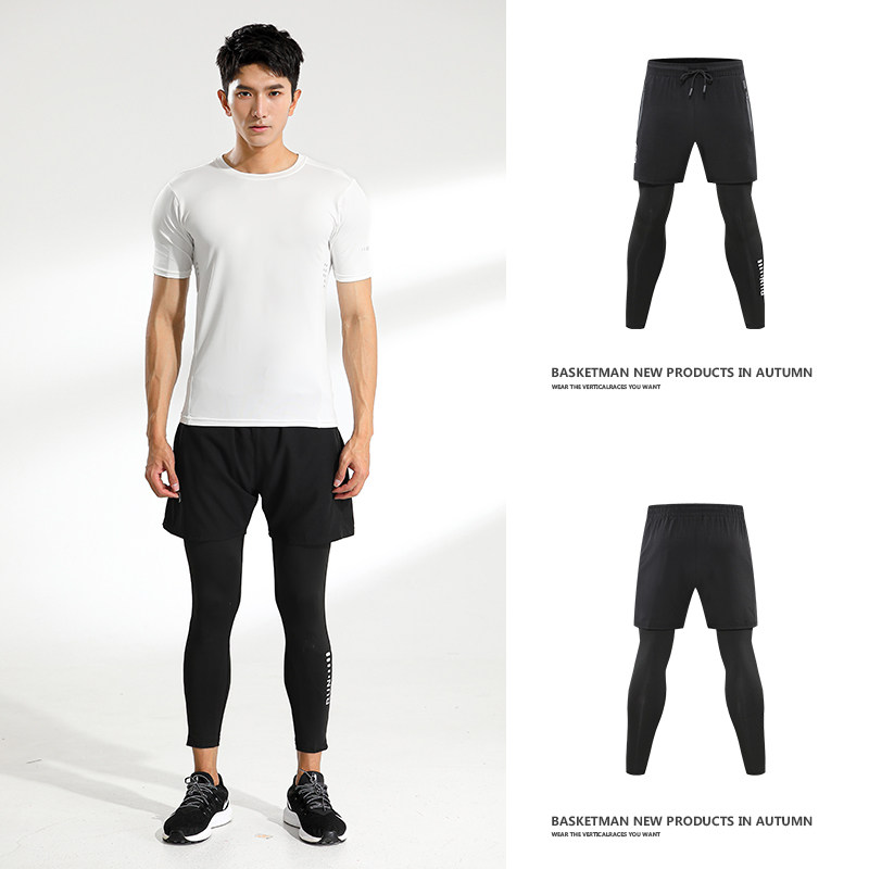 Basketball Fake Two Sports Pants Men Tight Pants Splicing 90% Pants Training Long Pants Fitness Running Speed Dry High Play-Taobao