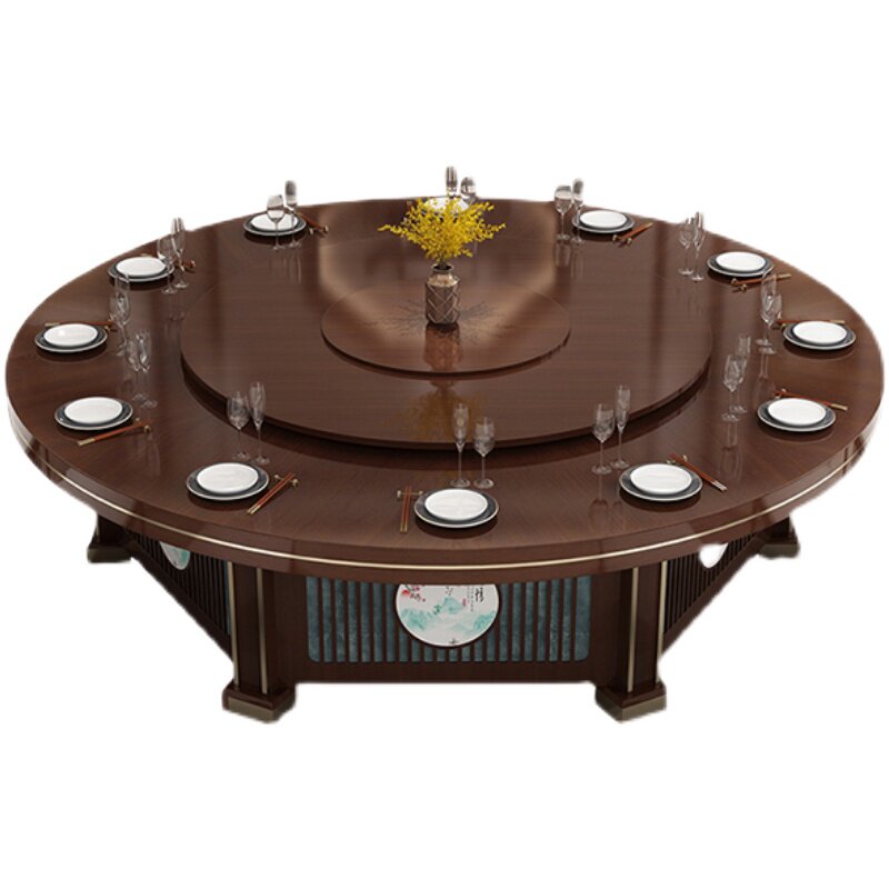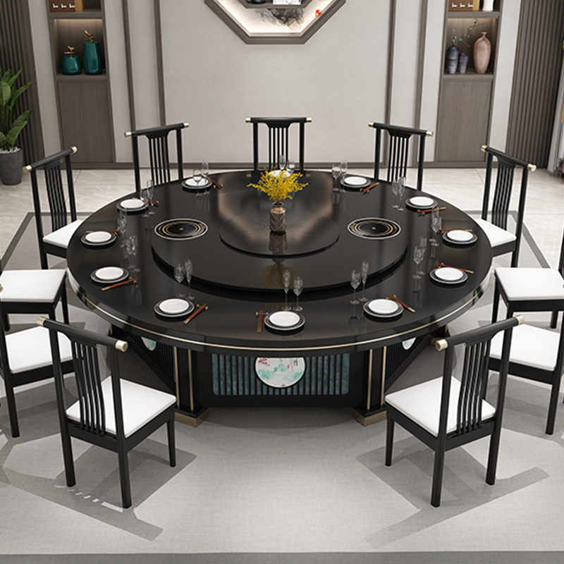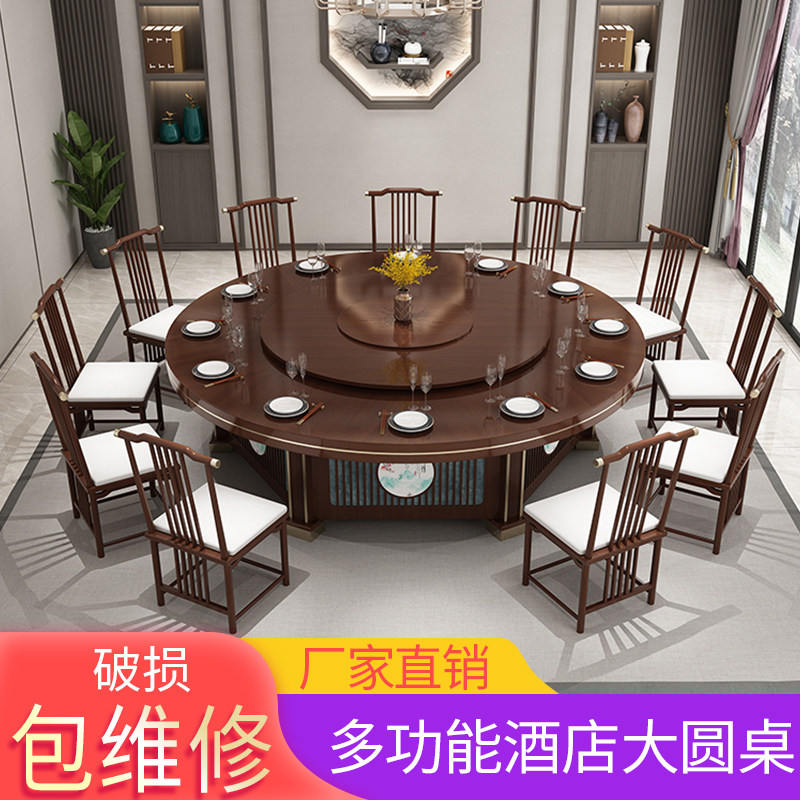 New Chinese Hotel Dining Table Big Round Table Hotel Bag Compartment 20 People 15 People Villa Dining Table And Chairs Electric Rotating Dining Table And Chairs