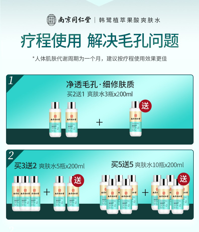 Nanjing Tongrentang Shrinks Large Pores Toner Repairs Acne Closed Mouth Oil Control Moisturizing Skin Care Products for Men and Women