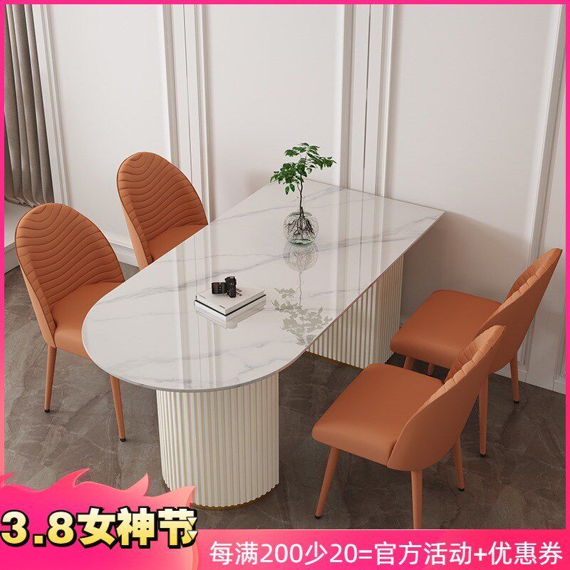 Modern minimalist slate dining table and chair combination oval dining table home small apartment light luxury dining room island typhoon