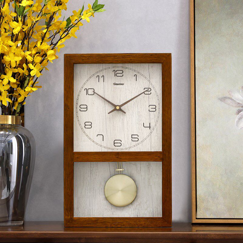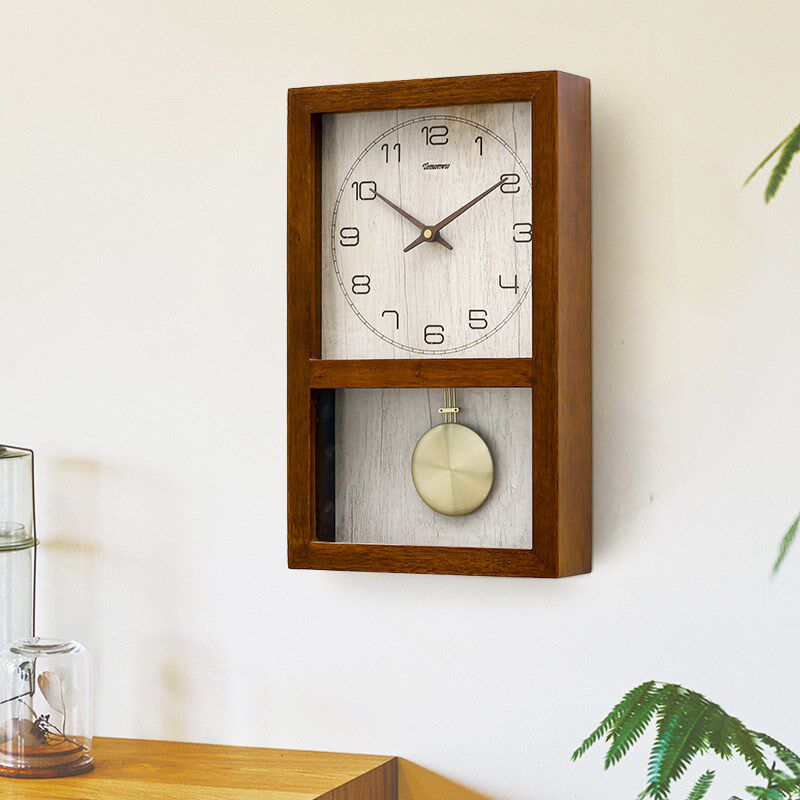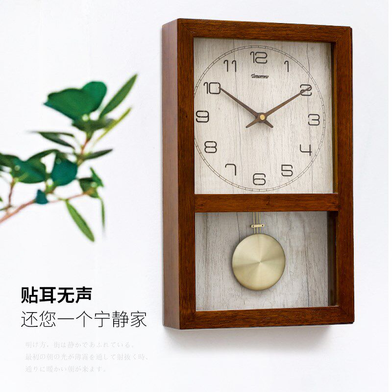 Day-style minimalist solid wood clocks Home hanging bell Living room New Chinese creative hanging table Nordic retro clock hanging wall