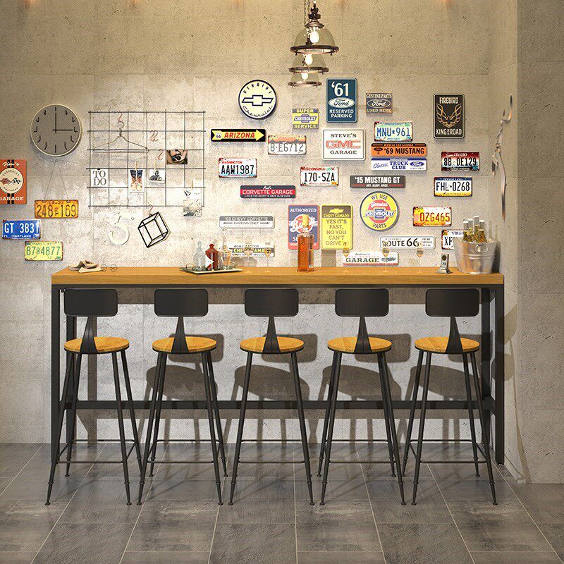 Solid wood bar table with wall strip table High foot table dining room High foot chair Stool Iron Art Bar Table Chairs Combo