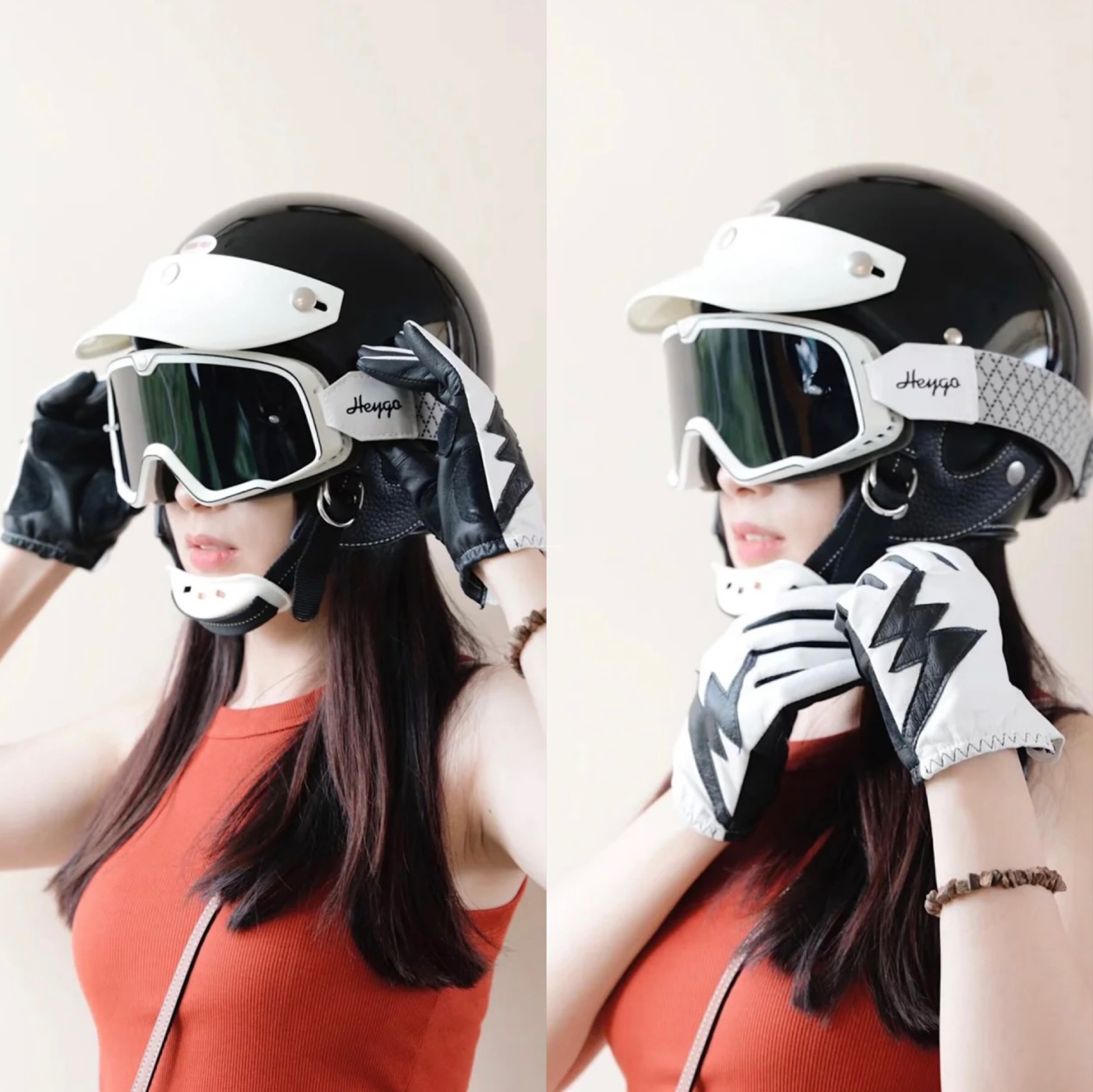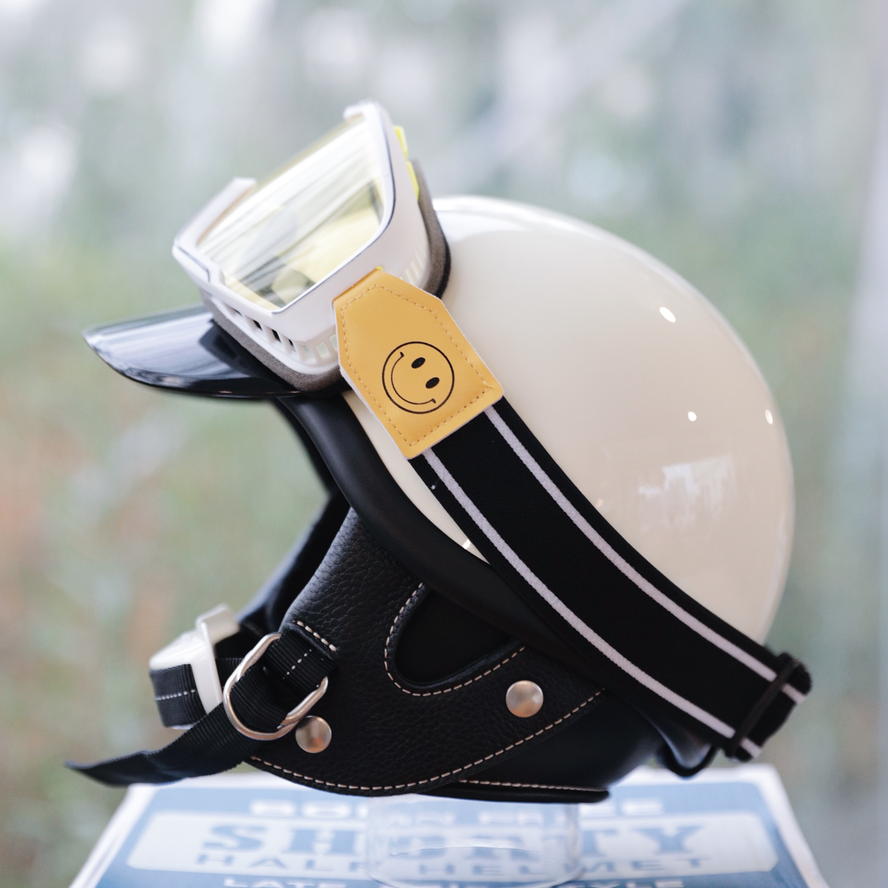 Retro Motorcycle Helmet BornFree Shorty Little White Helmet Heygo Black Dog Retro Ride