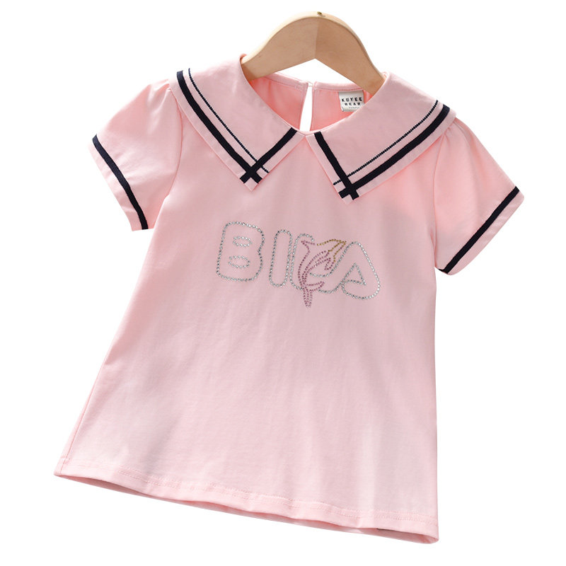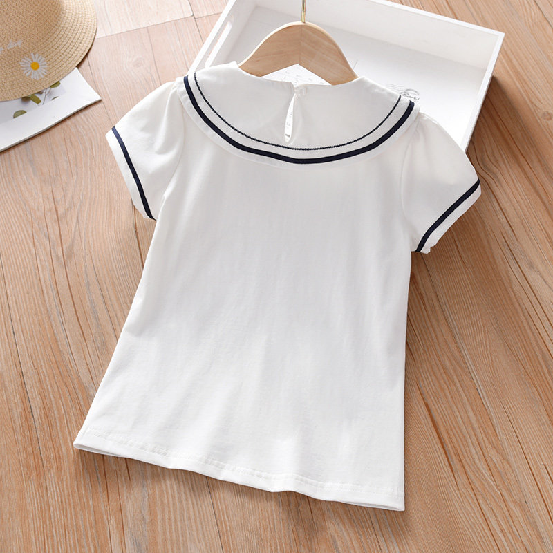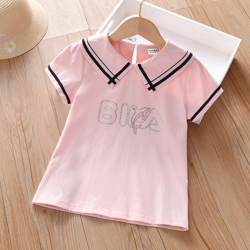 Girls T-shirt short-sleeved cotton summer 2022 new baby half-sleeved Western style lapel small and medium children's women's top T