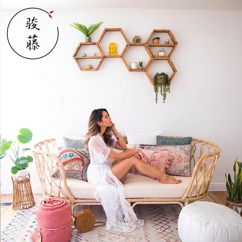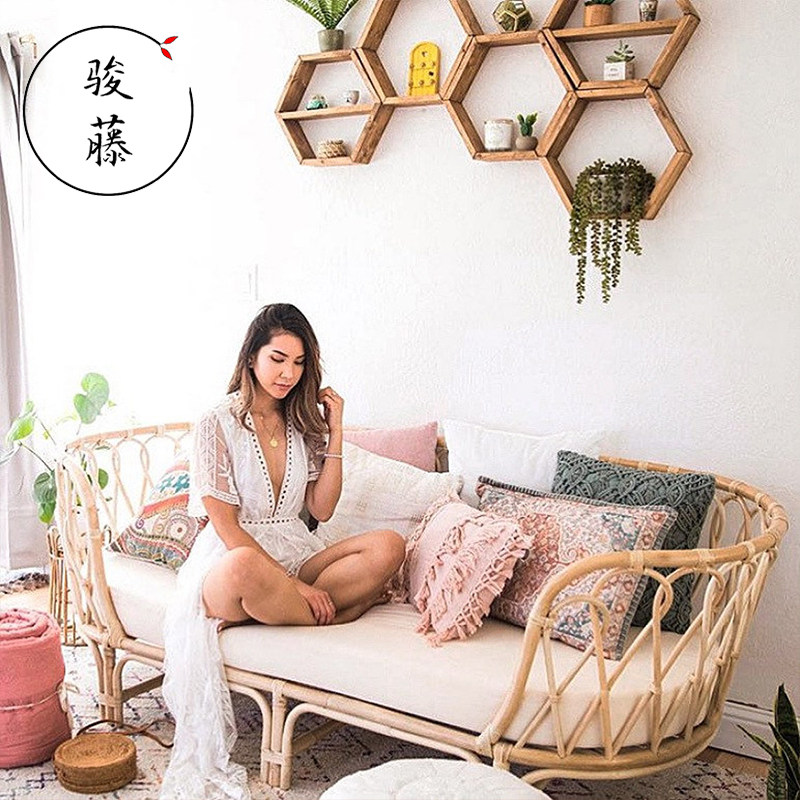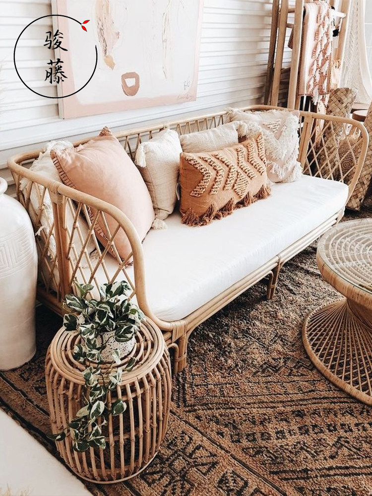 Nordic outdoor bamboo rattan sofa chair natural true rattan living room balcony rattan chair sofa bed bed bed leisure furniture
