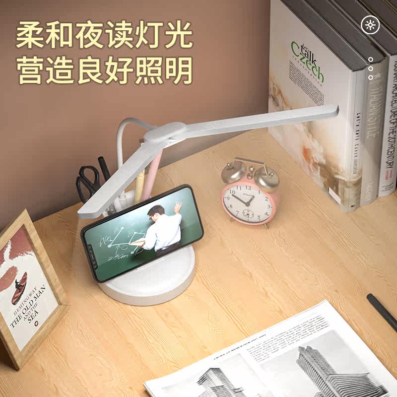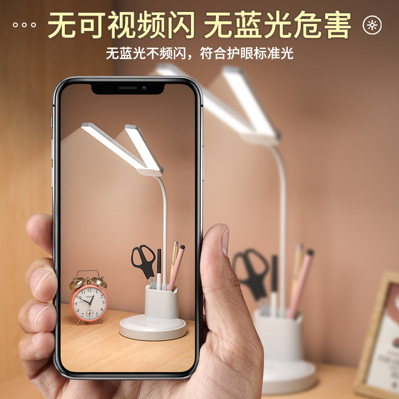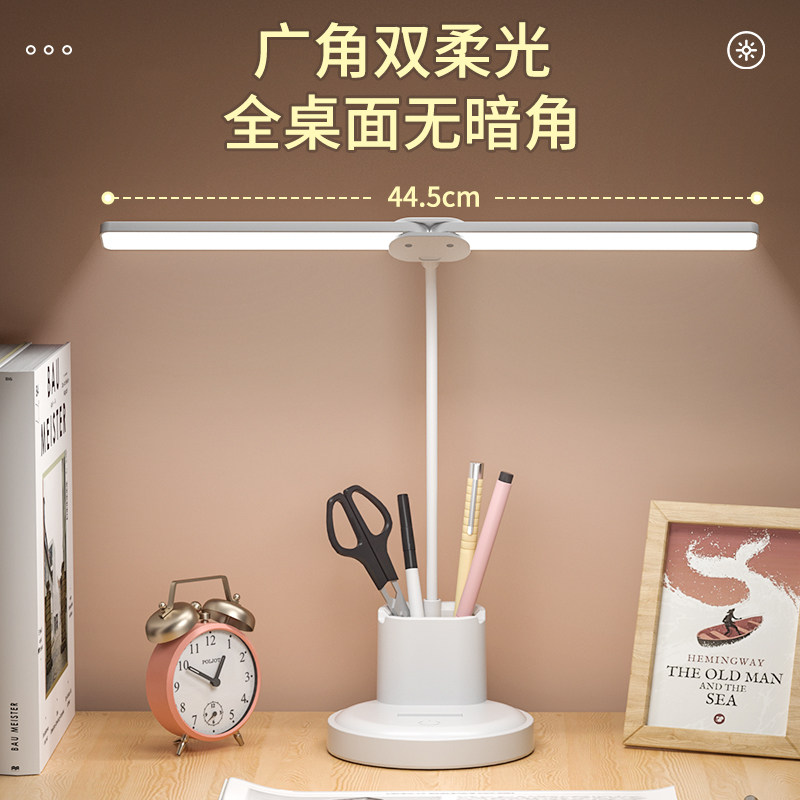 Double-headed table lamp learning special eye protection desk dormitory bedroom bedside small college students reading folding charging and plugging dual-use