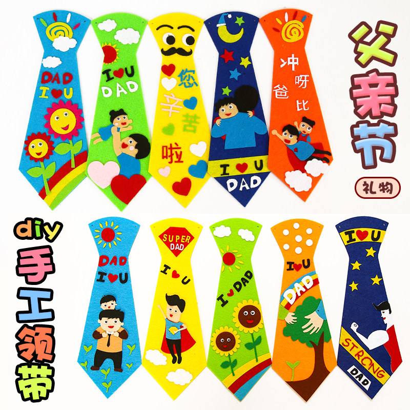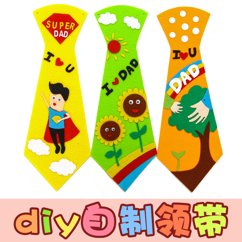 Father's Festival Unwoven Fabric Tie Kindergarten Children Diy Making Material Kits Gift Ideas Adhesive Parent-child Hand