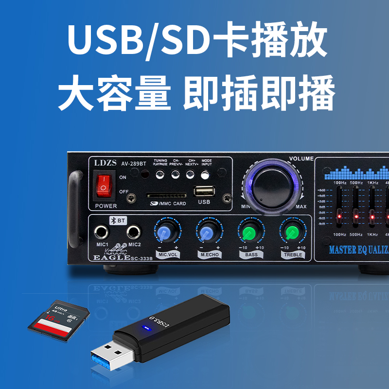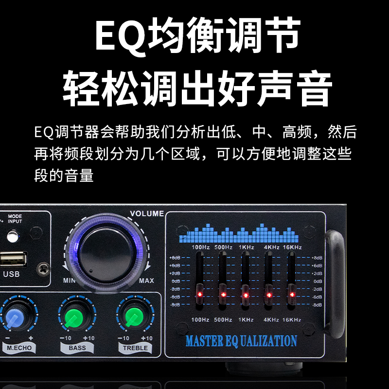 220V Home High power professional Bluetooth power amplifier EQ regulation Fever K song Card U pan multifunction HIFI