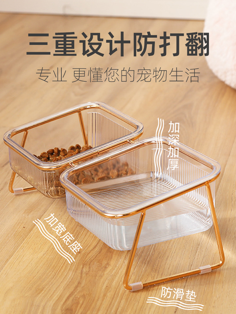 Pet bowl cat bowl protection cervical spine anti-overturning high-footed double bowl dog cat food bowl pet drinking water one bowl