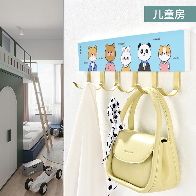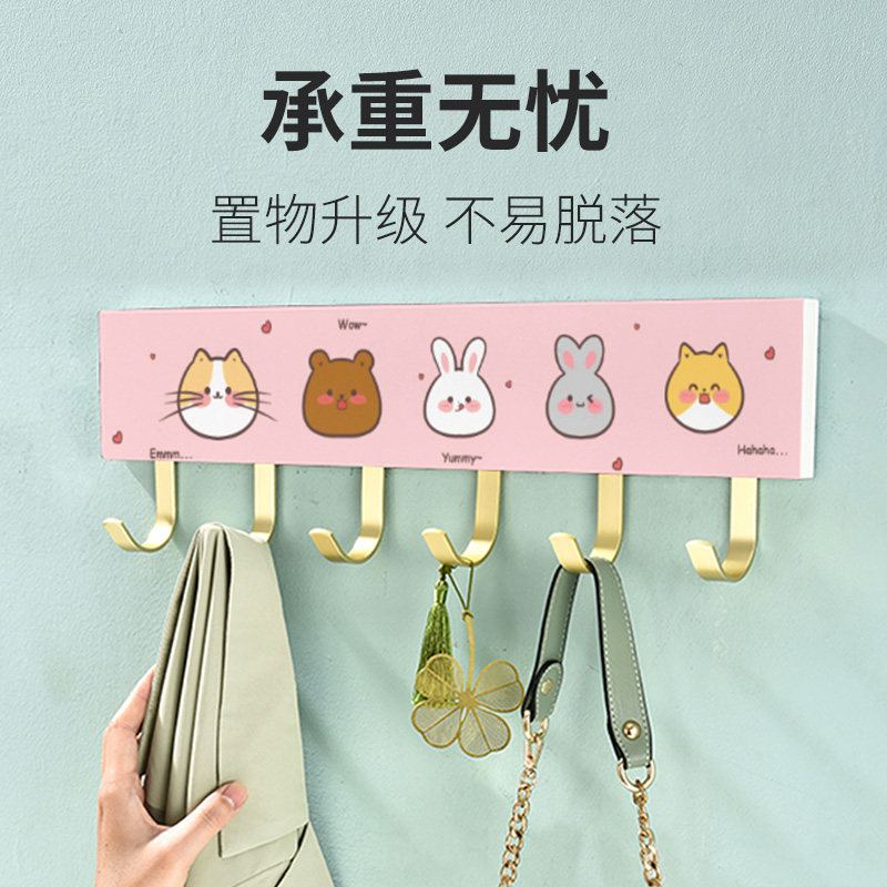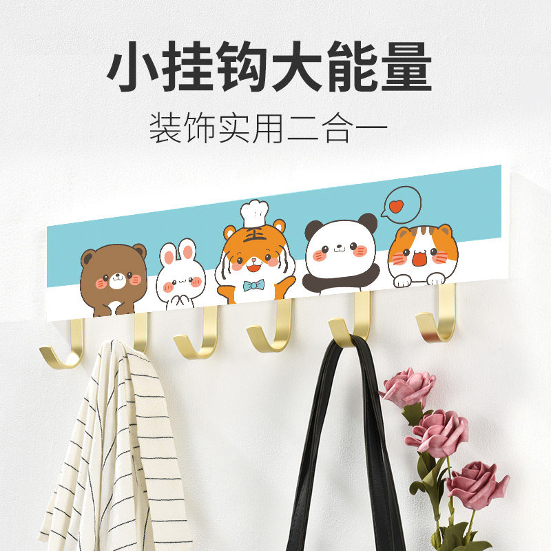 CHILDREN'S ROOM KEY WALL HOOK CLOTHES CARTOON CUTE ENTRANCE DOOR SOLID WOOD HANGING CLOTHES HOOK IDEA FREE OF PUNCH