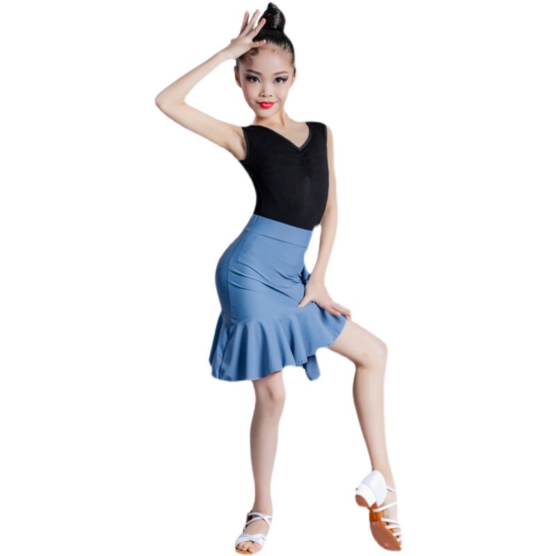 Model cotton long sleeves white chalk skirt Model cotton long sleeves blue gray polyester skirt Model cotton long sleeves black chalk skirt Model cotton long sleeves green polyester pollen polyester