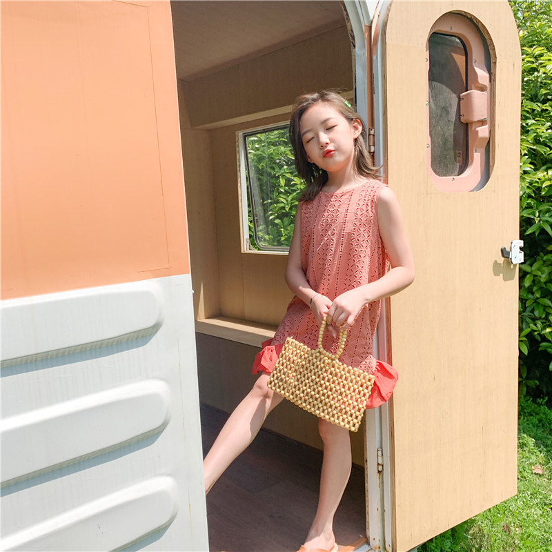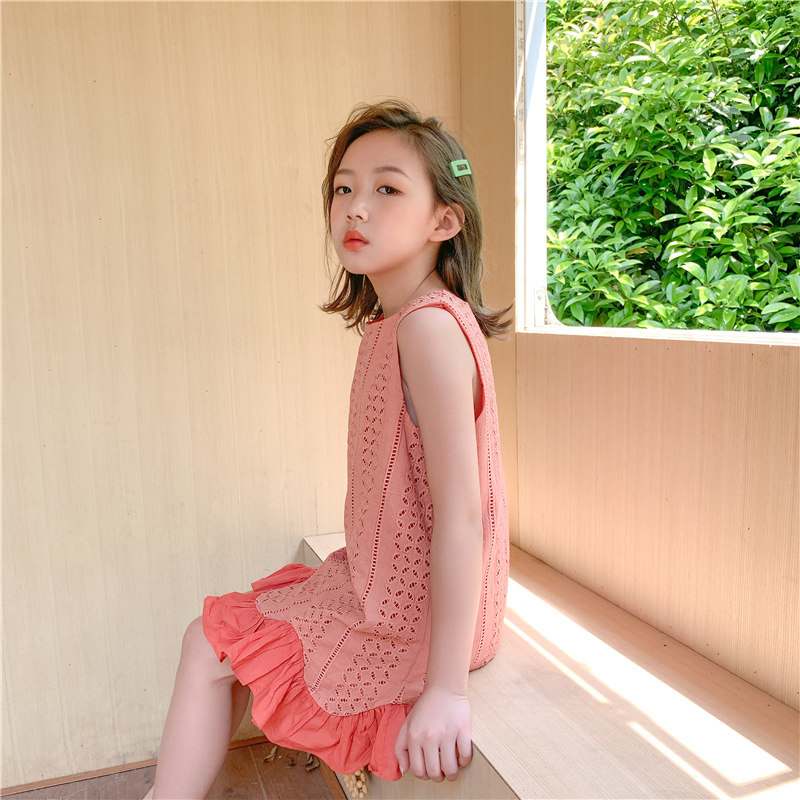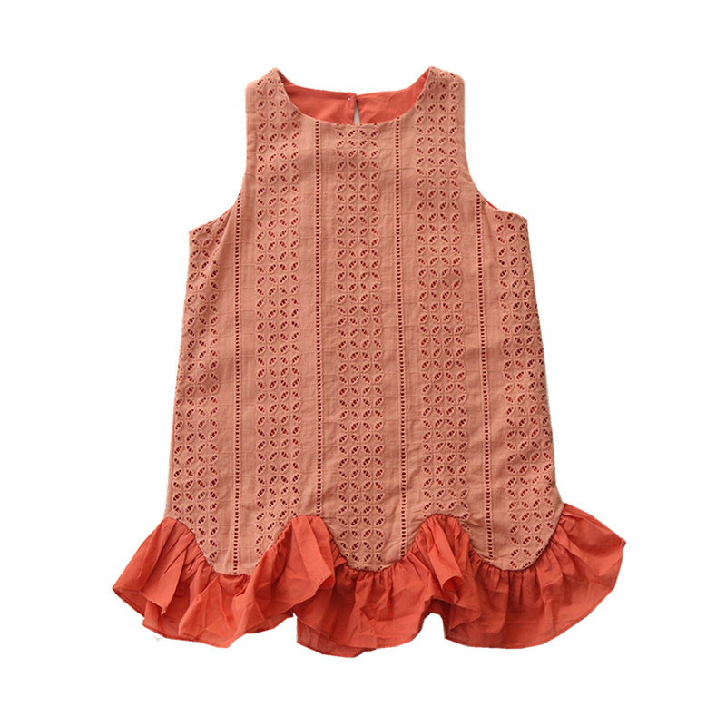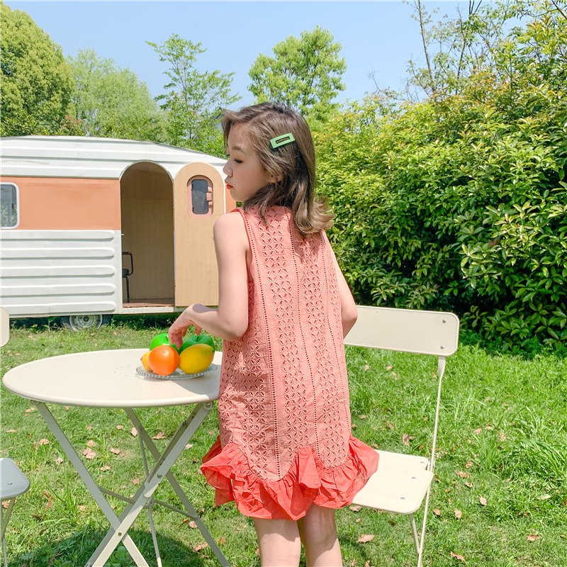 Girls dress summer children's clothing sleeveless princess skirt children's orange Western style little girl cotton big children's skirt