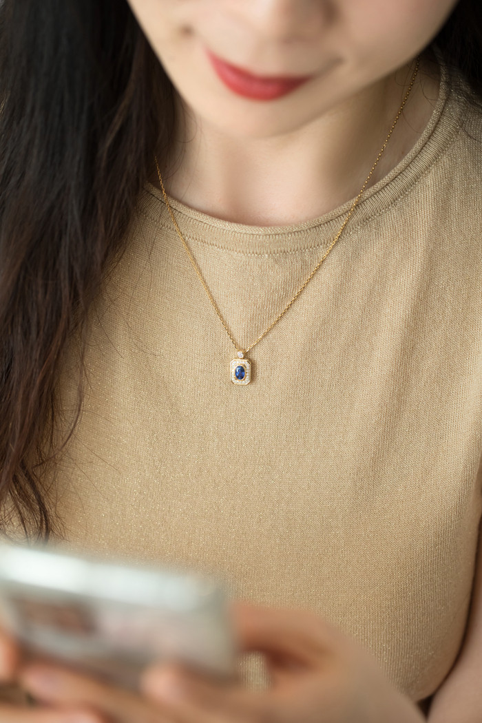 Via Perfume Bottle Naturally High Quality Royal Sapphire 60 points 18K gold diamond pendant necklace
