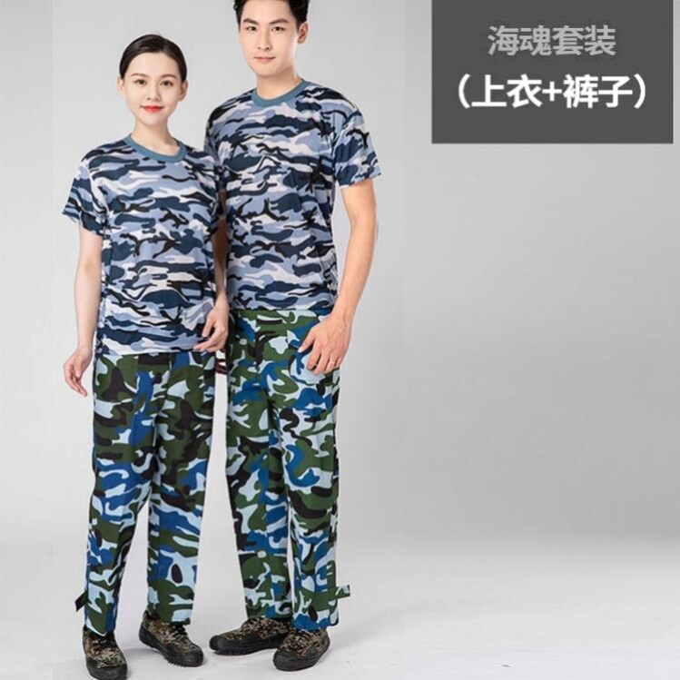 New short-sleeved military training uniform suit male college students summer thin section men's military fan outdoor mud spot camouflage overalls