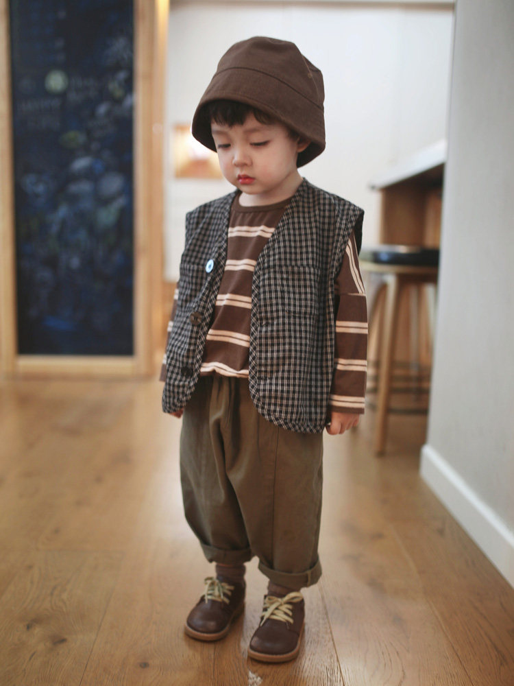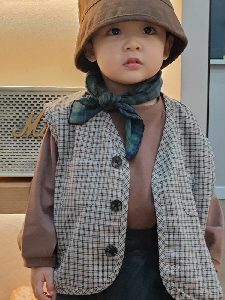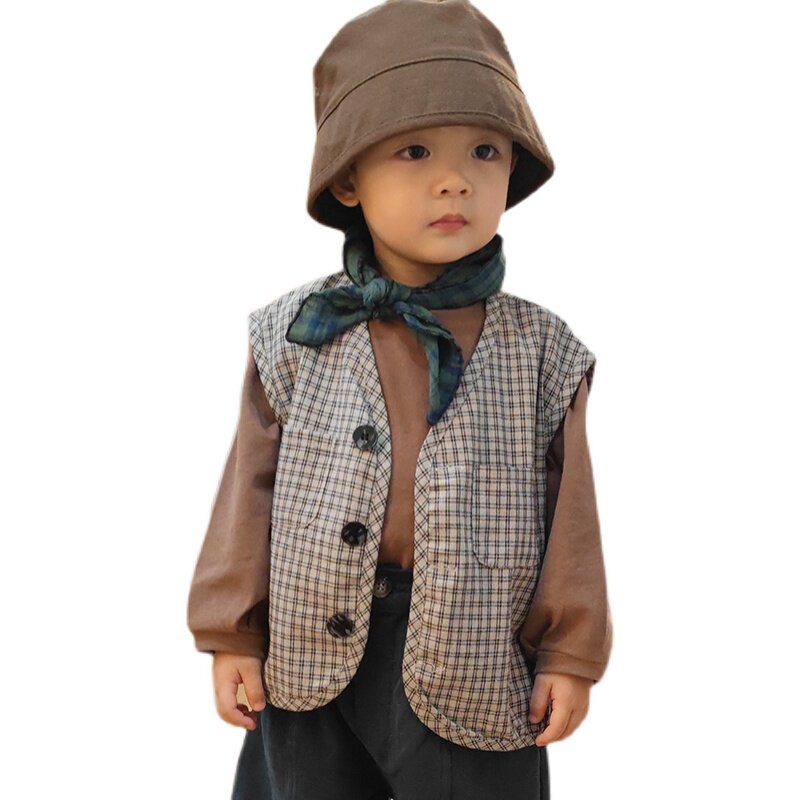 Inkstone home spring and autumn thin section plaid children's vest vest baby cotton and linen vest boys and girls 2022 new western style tide