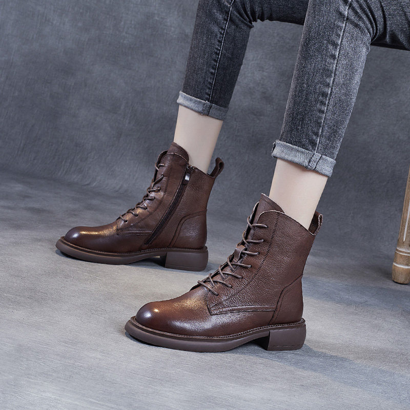 Genuine leather Martin boots women's retro autumn winter exploits soft leather short boots 2022 new soft flat-bottomed casual comfort