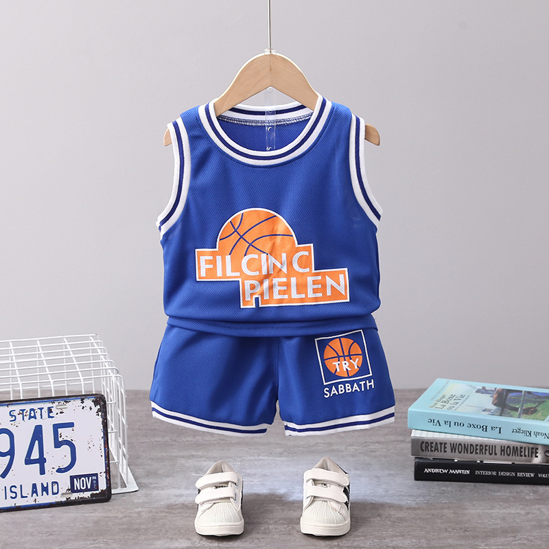 Summer breathable sports suit boys round neck vest shorts basketball clothing small and medium children baby foreign trade sports suit